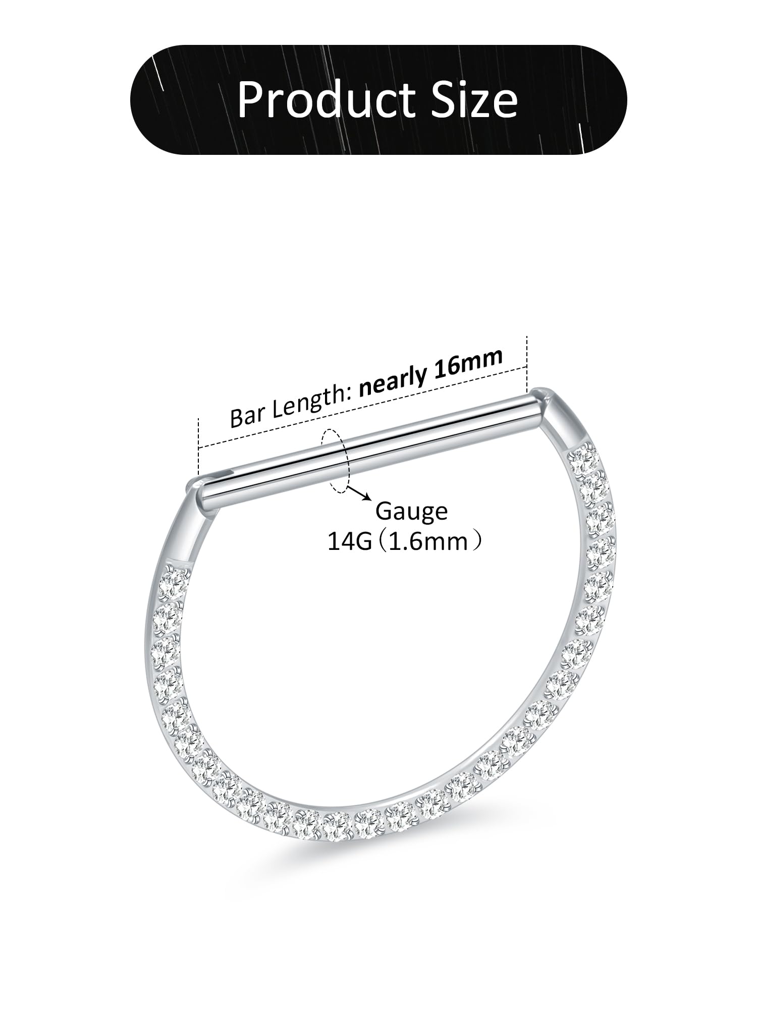 14g Nipple Rings: Bar Thickness: 1.6mm, bar length : 16mm. Please feel free to contact us by email if you need any assistance on choosing the right size for your piercings