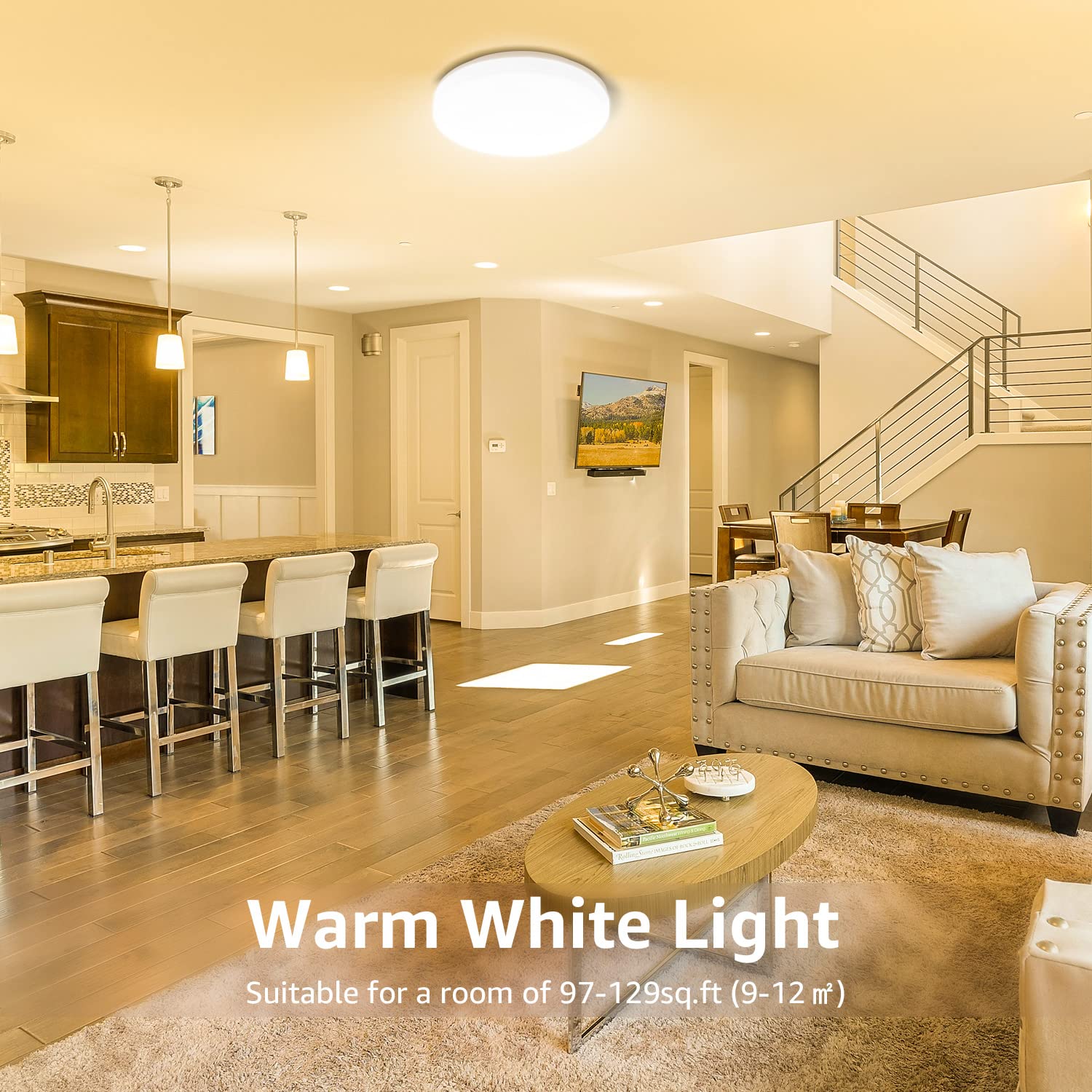 3000 kelvin bright white light:The flush mount ceiling light is warm and will not being harsh. This LED ceiling light offers high brightness and Up to 88% energy saving, making it suitable for various rooms.