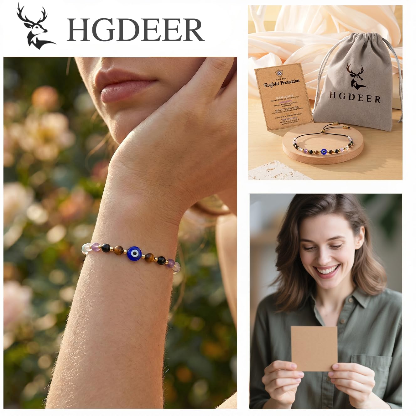 Ready for Giving -- Complete protection gifts set includes crystal bracelets, meaningful evil eye protection quote card, and velvet gift pouch, perfect stocking stuffer or spiritual gifts for women on any occasion