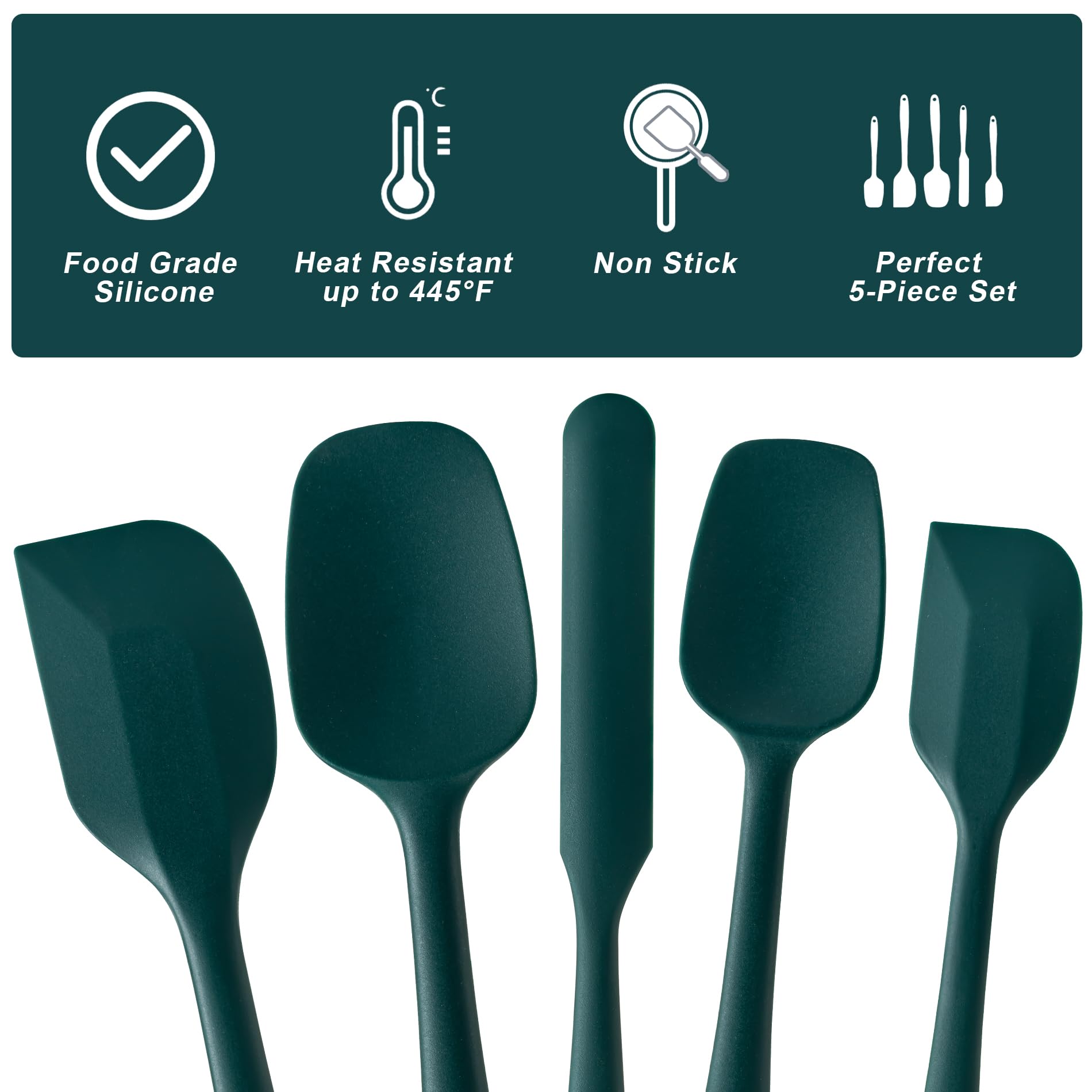 【Versatile Spatula 5-Piece 】:Silicone spatulas heat resistant:1 x large spoon spatula; 1 x large spatula; 1 x medium spatula/knife; 1 x small spatula; 1 x small spoon spatula.