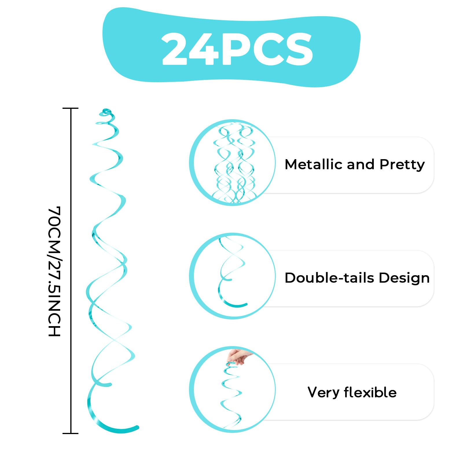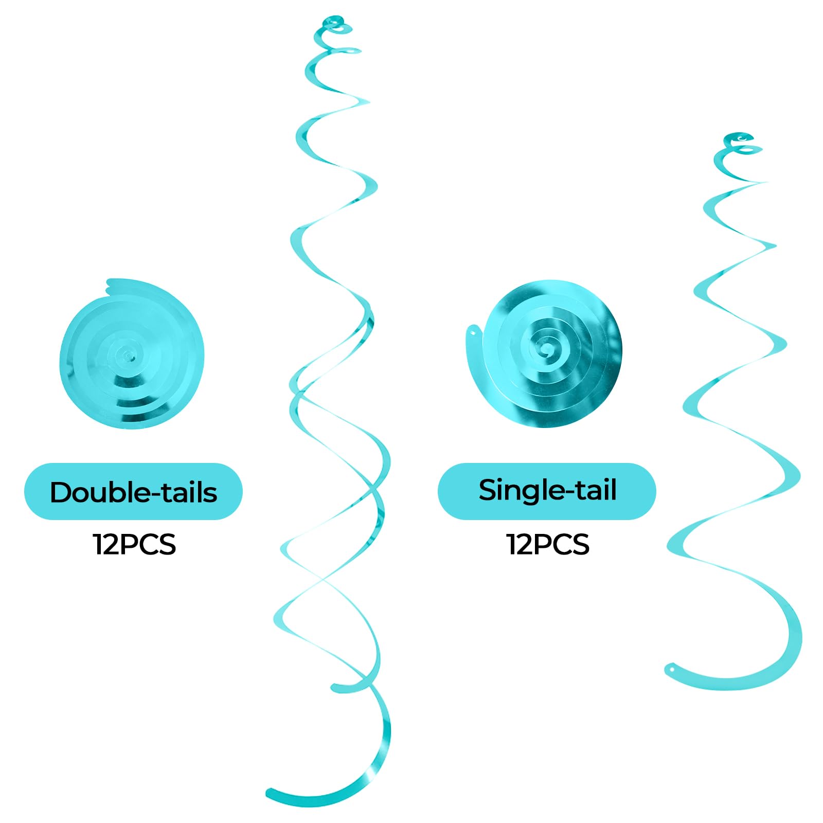 Package Included: This ceiling decoration includes 24 hanging swirls, 12 single-tail swirls and 12 double-tails swirls for a richer visual effect. Each swirl extends to approximately 25.5 inches. Comes with 24 plastic hooks.