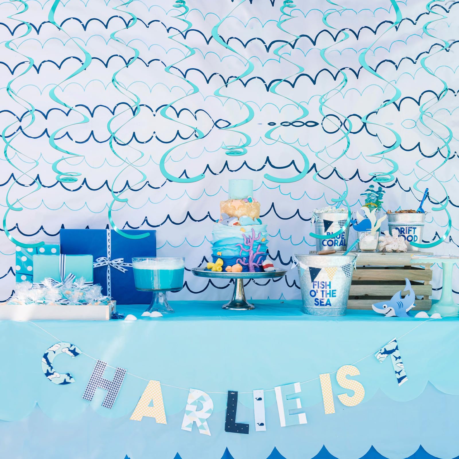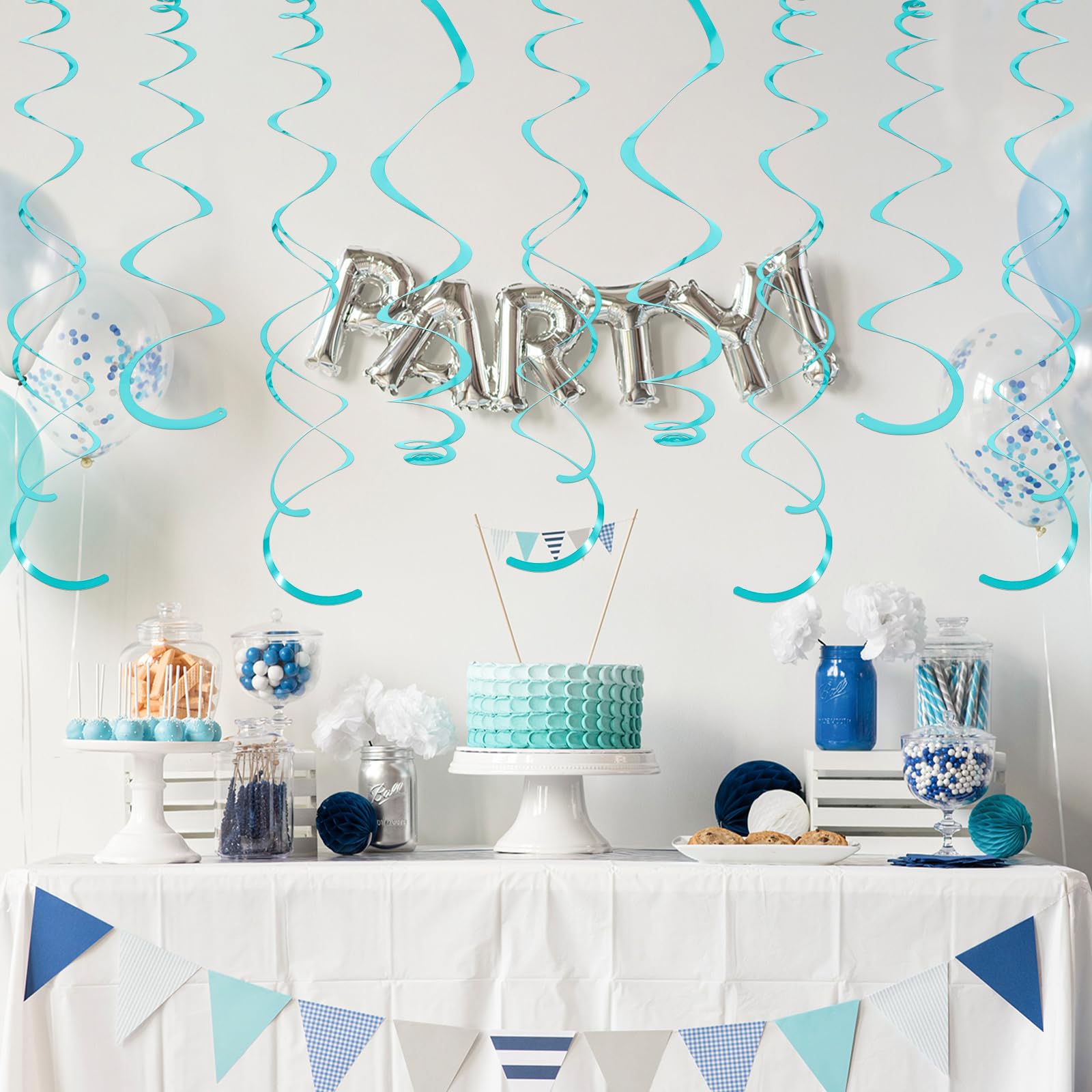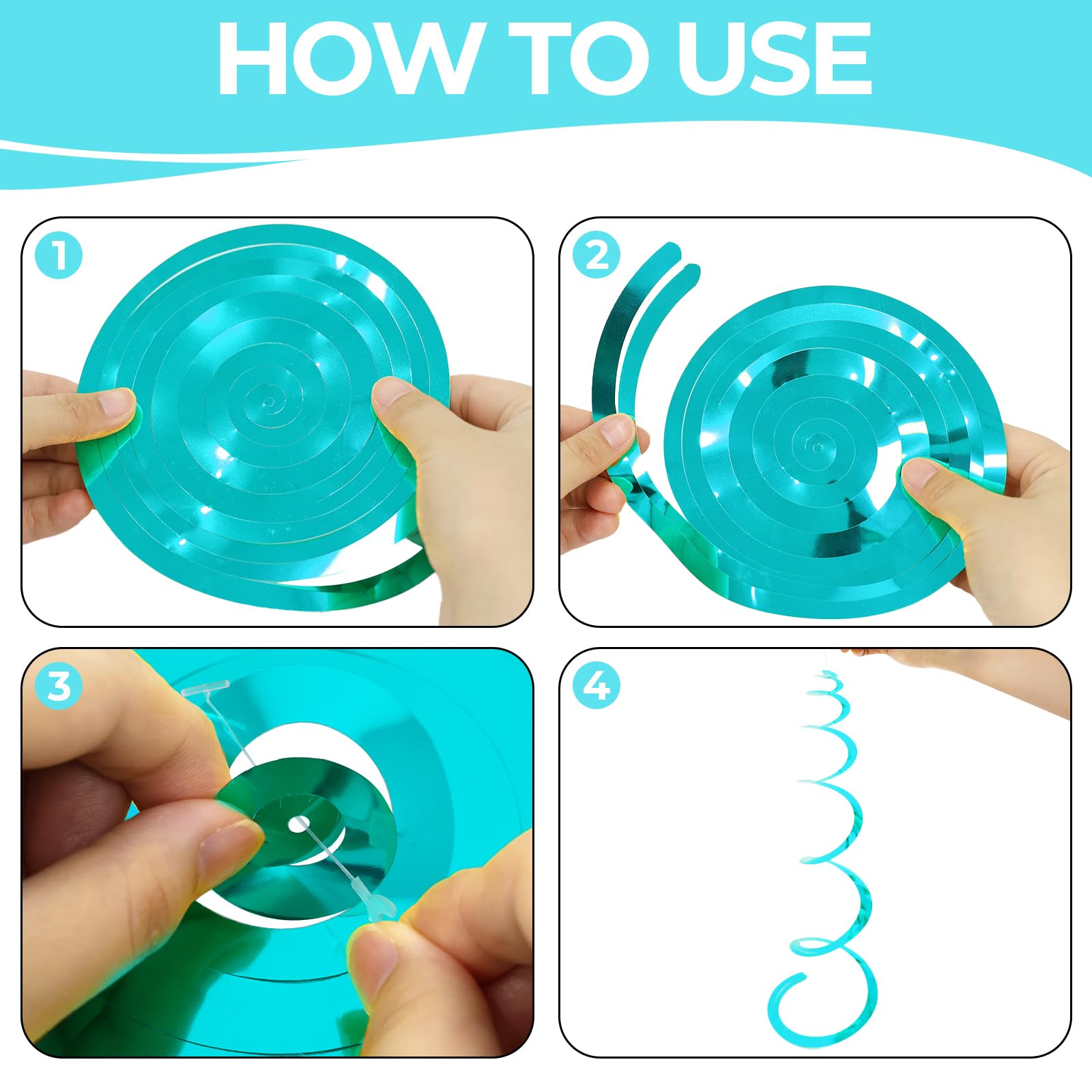 Assemble Easy: The teal hanging swirls have a small ring on them, just tear the swirl slowly along the edge and hang it on the hook to complete a simple party decoration. Time saving and easy to operate.