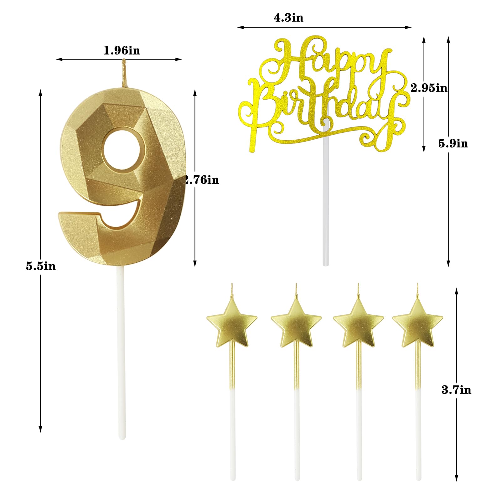 The unique diamond design and gorgeous metallic color of 3D diamond digital candles are suitable for birthday cake decorations of any size. With cute star birthday candles, it looks more unique and beautiful, full of joy. You can choose any number or combination of 0-9, such as 1, 12, 16, 18, 21, 39, 50, 60, etc. Flashing 3D digital birthday candles create unique and unforgettable surprise moments or anniversaries for your birthday party in the dark! product information: Ingredients: environmentally friendly paraffin wax Number birthday candle: 5.5 inches high, 1.96 inches wide, and 0.47 inches thick. Weight: 23g Star birthday candle: 3.7 inches high, 0.11 inches wide, and 0.35 inches thick. Weight: 3g amount of goods: Number birthday candle*2 Star birthday candle*4 Color: Gold | Size: 95 Reminder: Please do not leave lit candles unattended. Keep candles out of the reach of children. Do not place candles on or near flammable materials. Guarantee: Our customer service will provide you with service at any time. We promise to return and exchange unconditionally, and high-quality products and services are our top priority.
