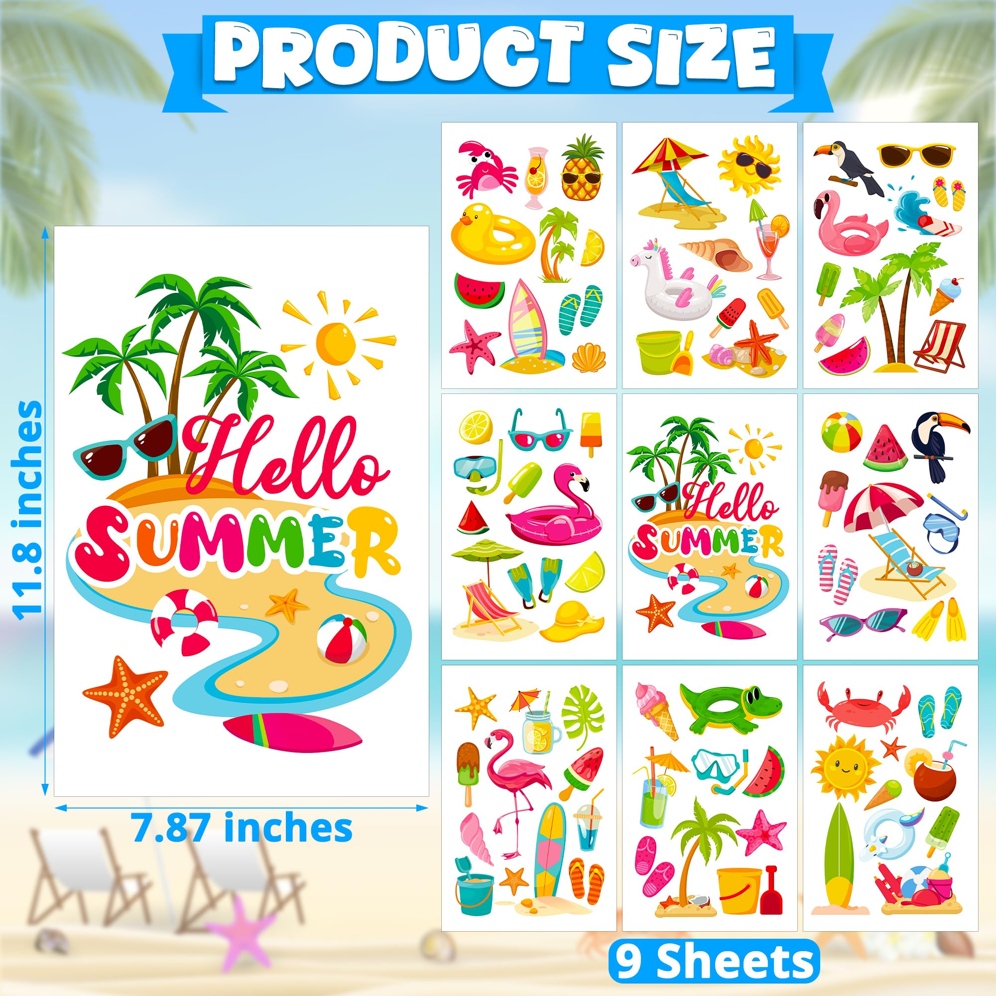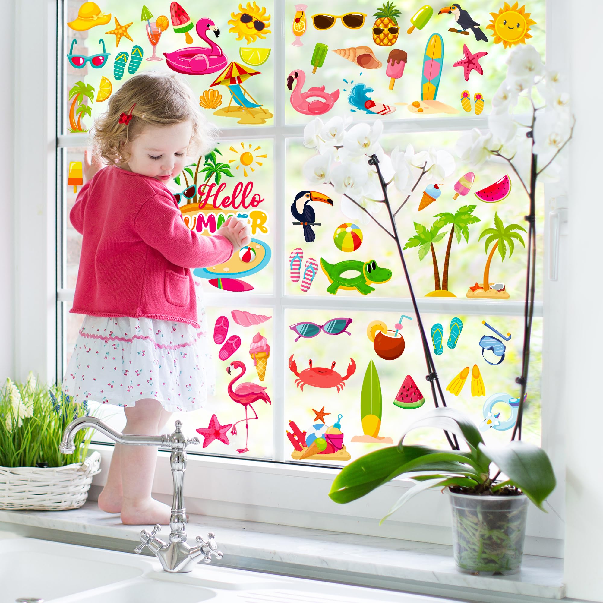 Package Includes: You will receive 9 sheets(79 pieces) summer window clings, which measure 7.87 ×11.8 inches to decorate your home and celebrate summer.