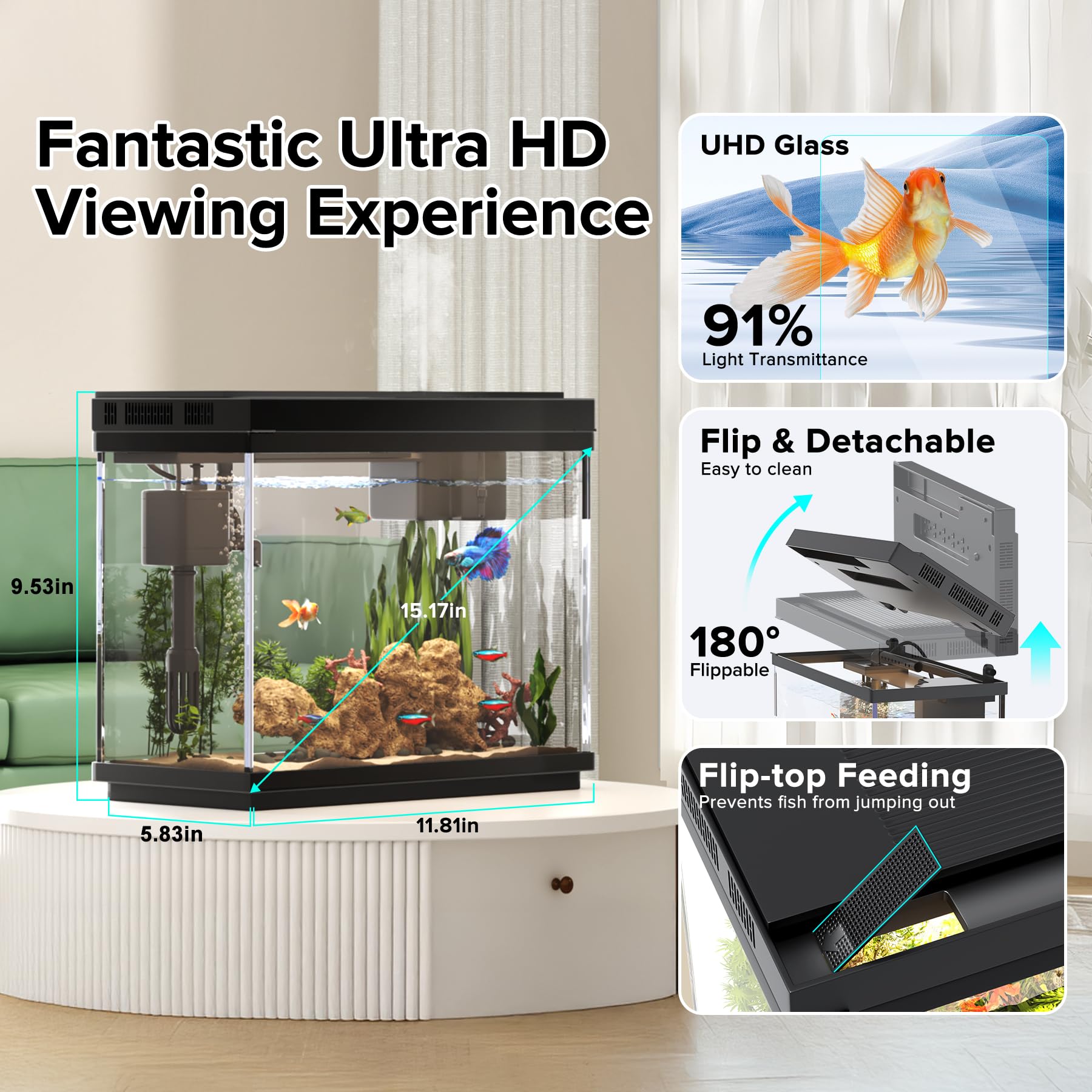 Ultra-Clear Viewing Experience: The small fish tank is made of high-quality 4mm ultra-high-definition glass, providing an excellent viewing experience with panoramic views to capture fish dynamics. Enhanced thickened non-slip base for long-lasting durability