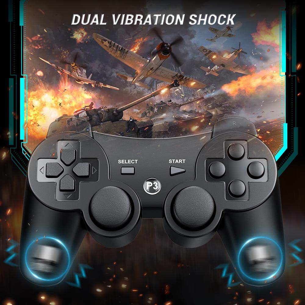 【Double Shock 3 & Motion Sensor Supported】The controller wireless for Sony PS3 supports the double shock 3 function. The grips vibrate with each explosion, shocking, firing in supported games, giving you more fun and a more immersive gaming experience. 6-axis motion sensing function is also supported for the remote controller for PS3 so that you can control the games freely with the moving of your hands.