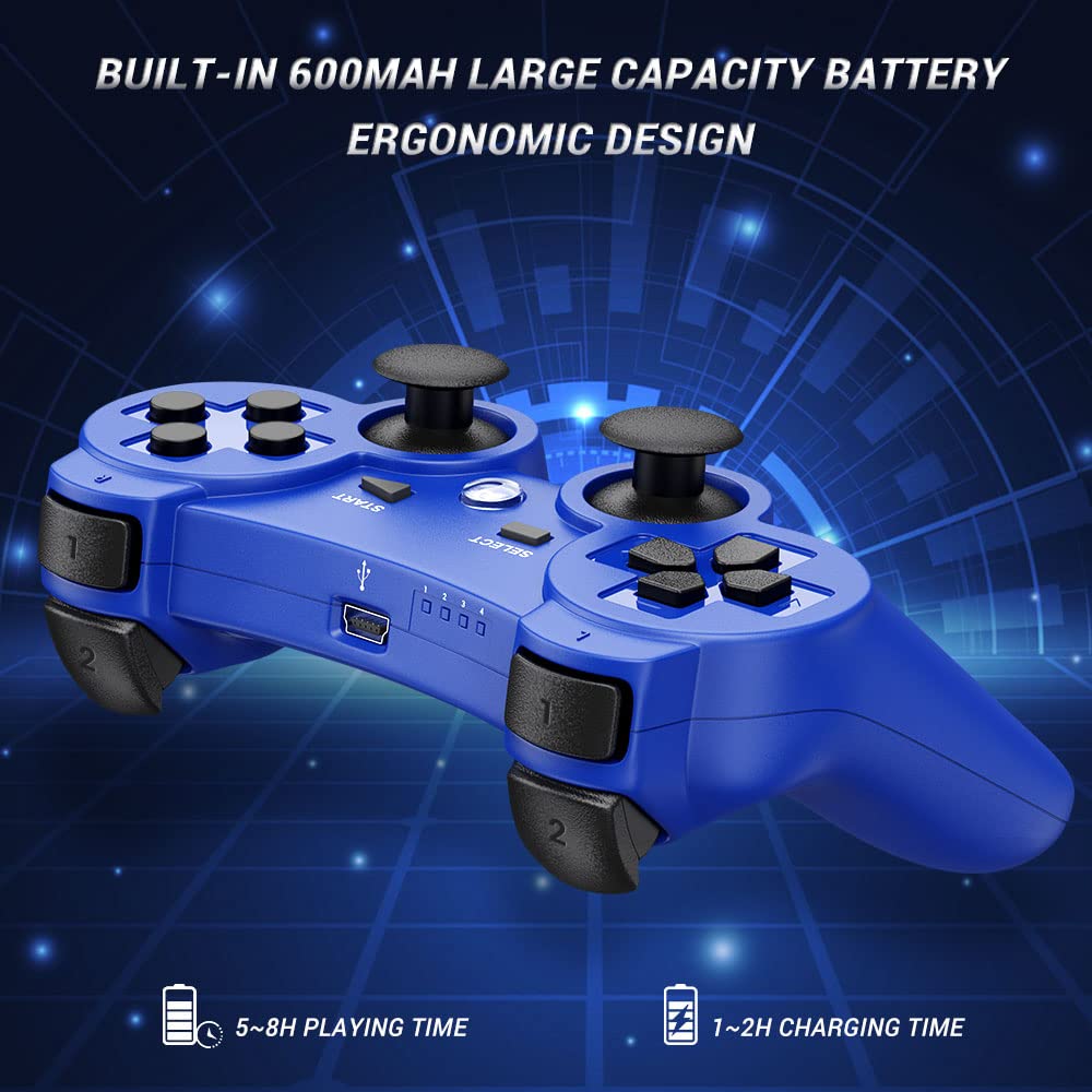 【Long Battery Life & Long Bluetooth Connection Distance】Remote for PS3 with a large battery capacity of 600mAh, providing 5~8h long playtime (auto-sleep function is provided for saving power).