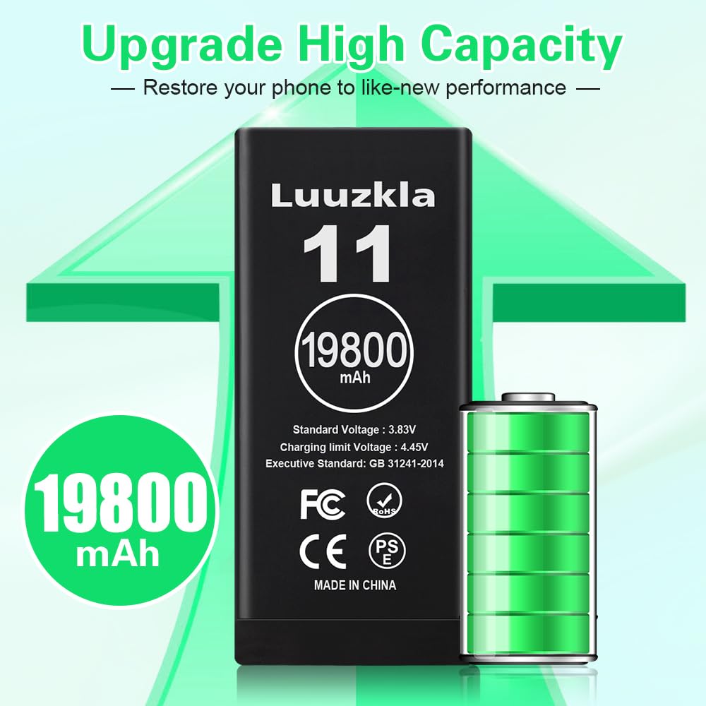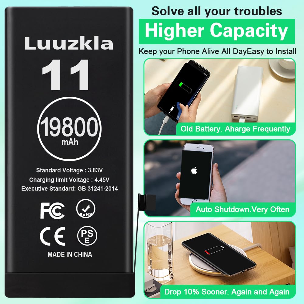 【19800mAh High Capacity】19800mAh Super battery Compatible with iPhone 11 power more than Original or Other Battery. Brand new 0 cycle, last over 2000 cycles. Make your Phone 11 last longer and reduce your recharging times. Say goodbye to the trouble of insufficient old batteries!