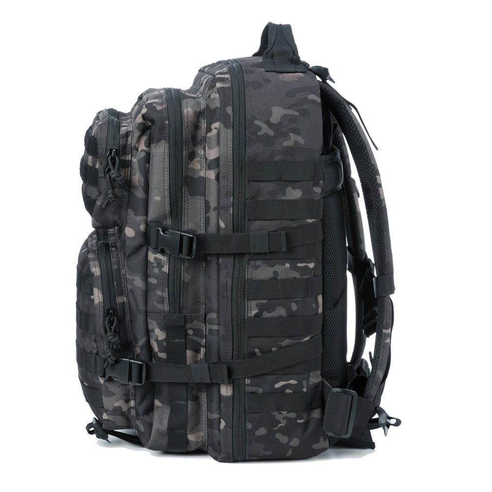 Assault pack backpack with double-stitched, Heavy duty zippers and utility-style cord pulls, Side and front load compression system, Ventilated mesh padded back area & shoulder strap,breathable and comfortable