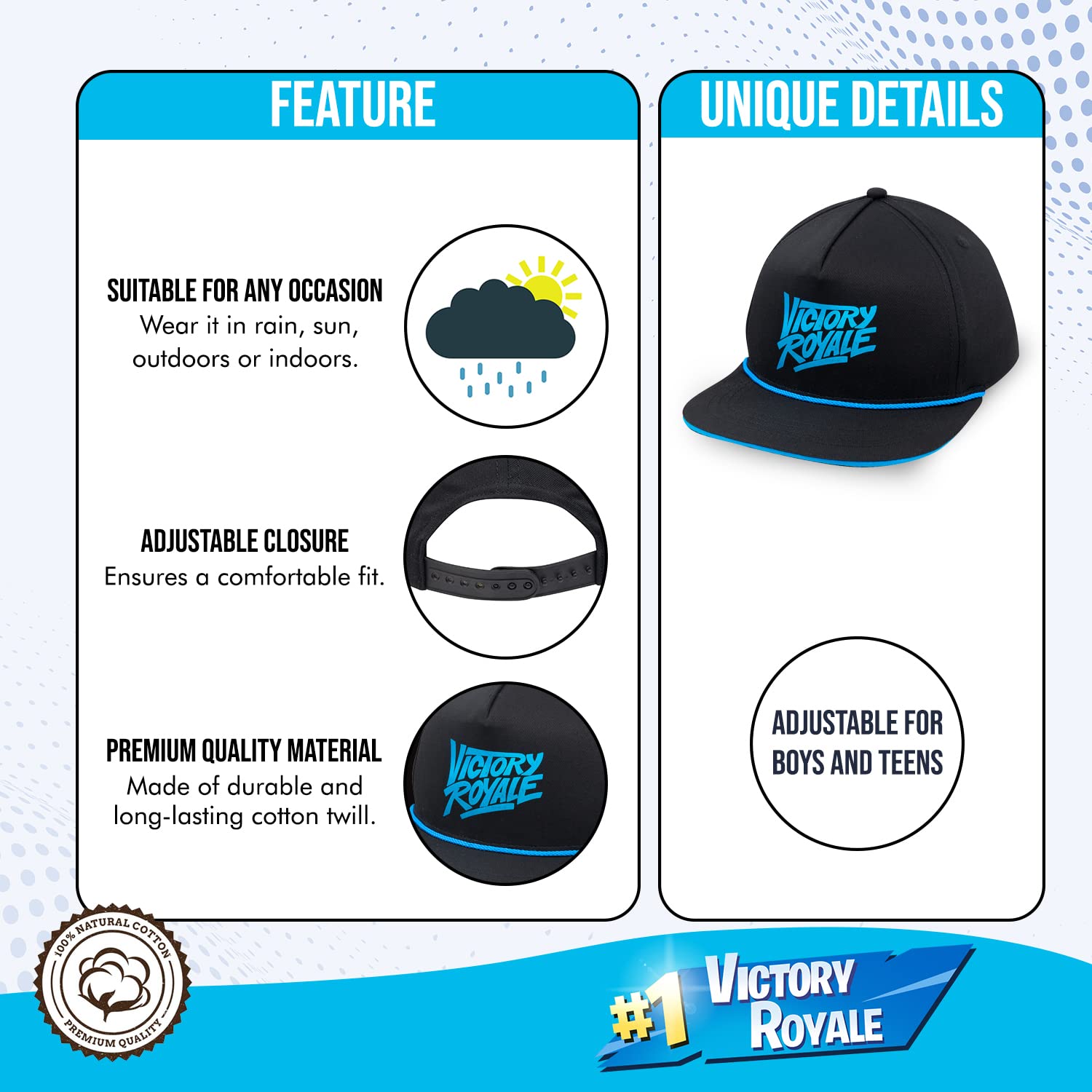 Wash With Care--It's important to hand wash this Fortnite cap for boys and let it air dry. This helps the hat maintain its sleek design and makes it optimal daily use.