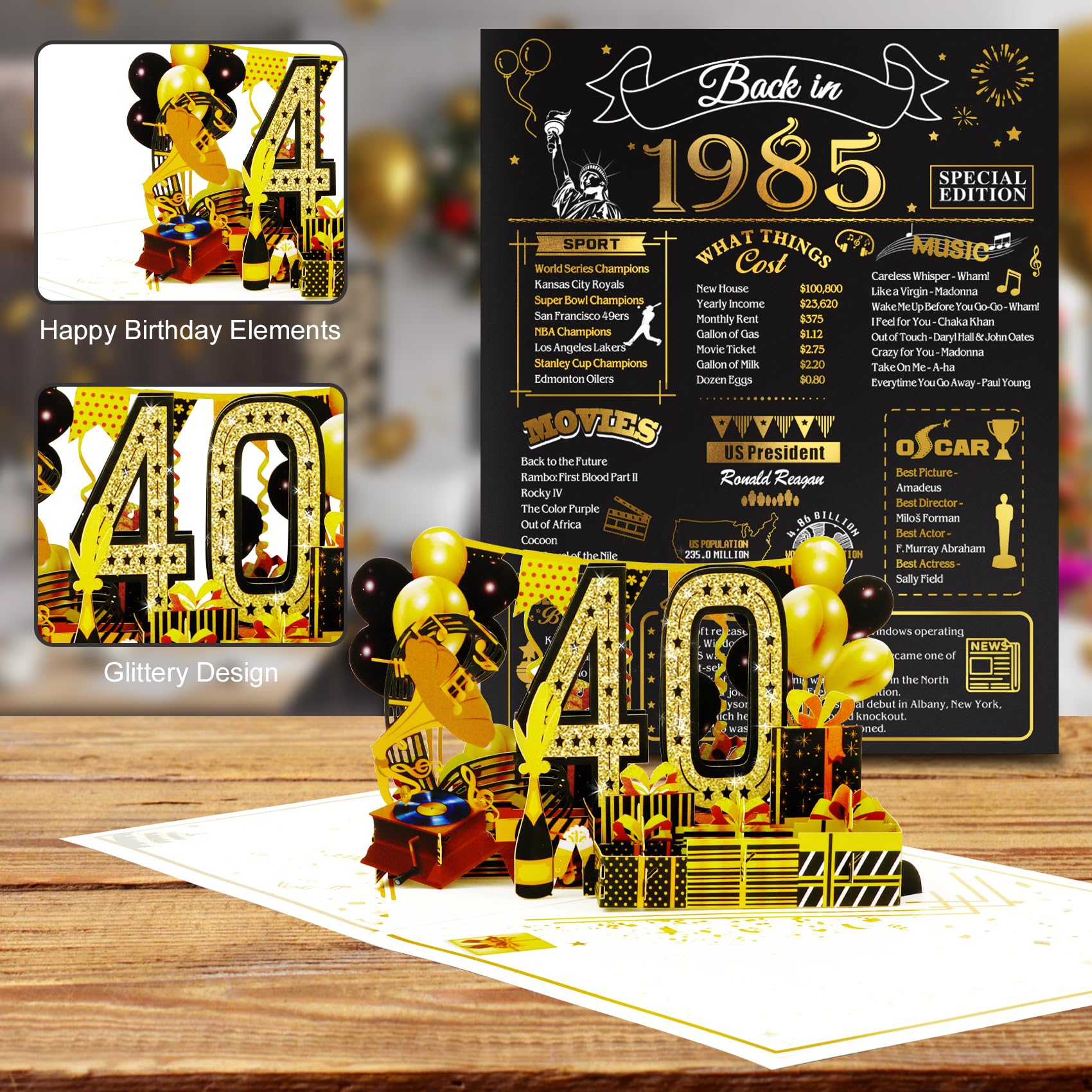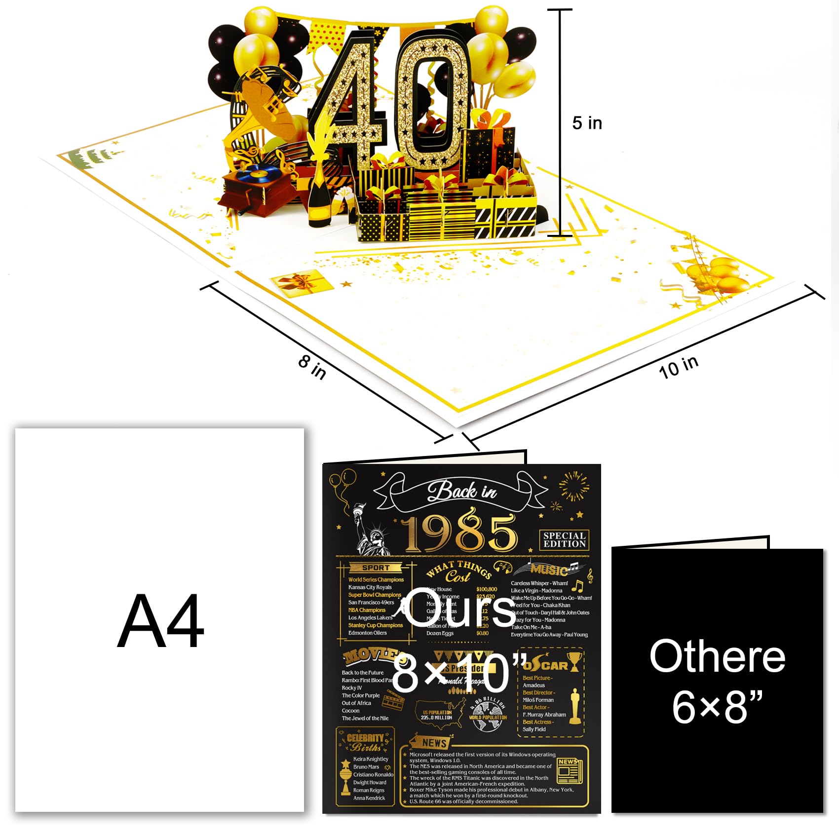 40th Birthday Pop Up Card: This cute 40th birthday pop up card is mini-masterpiece displays a beautiful 3D pop-up design.It can be popped up of features “40” with balloons and gift box. Ideal Creative Gifts for party. Makes your birthday or anniversary party’s decorations stand out