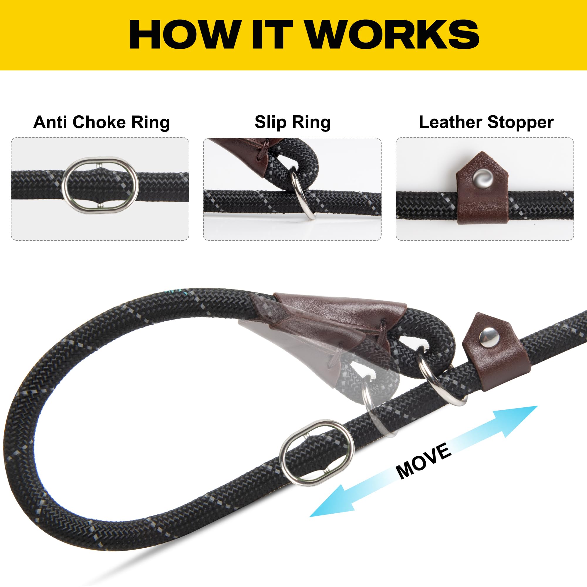 【Great for Training】– The slip leash tightens when your dog pulls and loosens when the behavior is corrected. Great dog training leash to correct the behavior under control. Anti-choke ring is included to prevent choking hazard