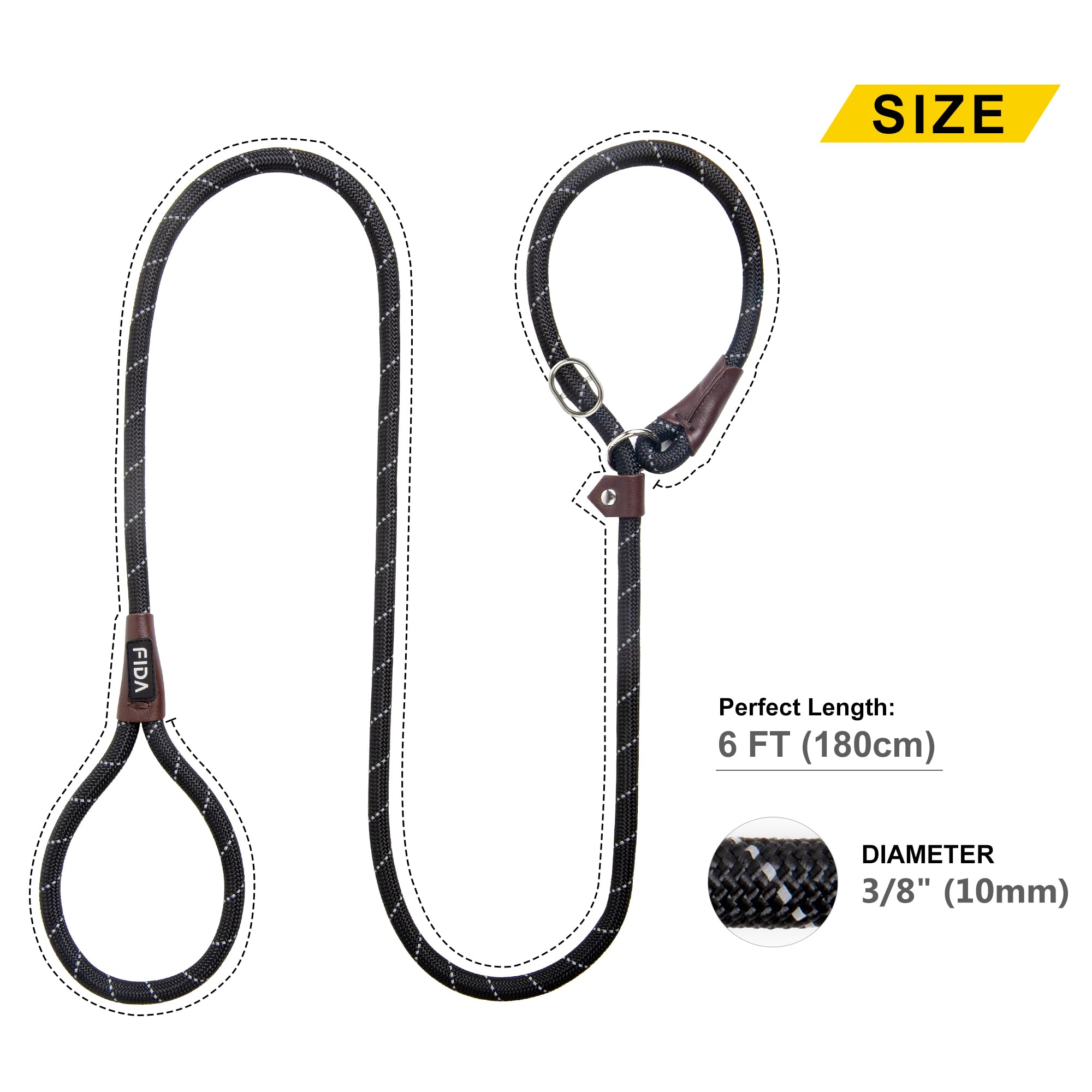 【STRONG & LIGHTWEIGHT】- These Premium Slip Leads for dogs are made of high strength nylon rope, super durable metal ring, and the knots bound with leather cover. 3/8” thick rope provide maximum durability and comfortable grip