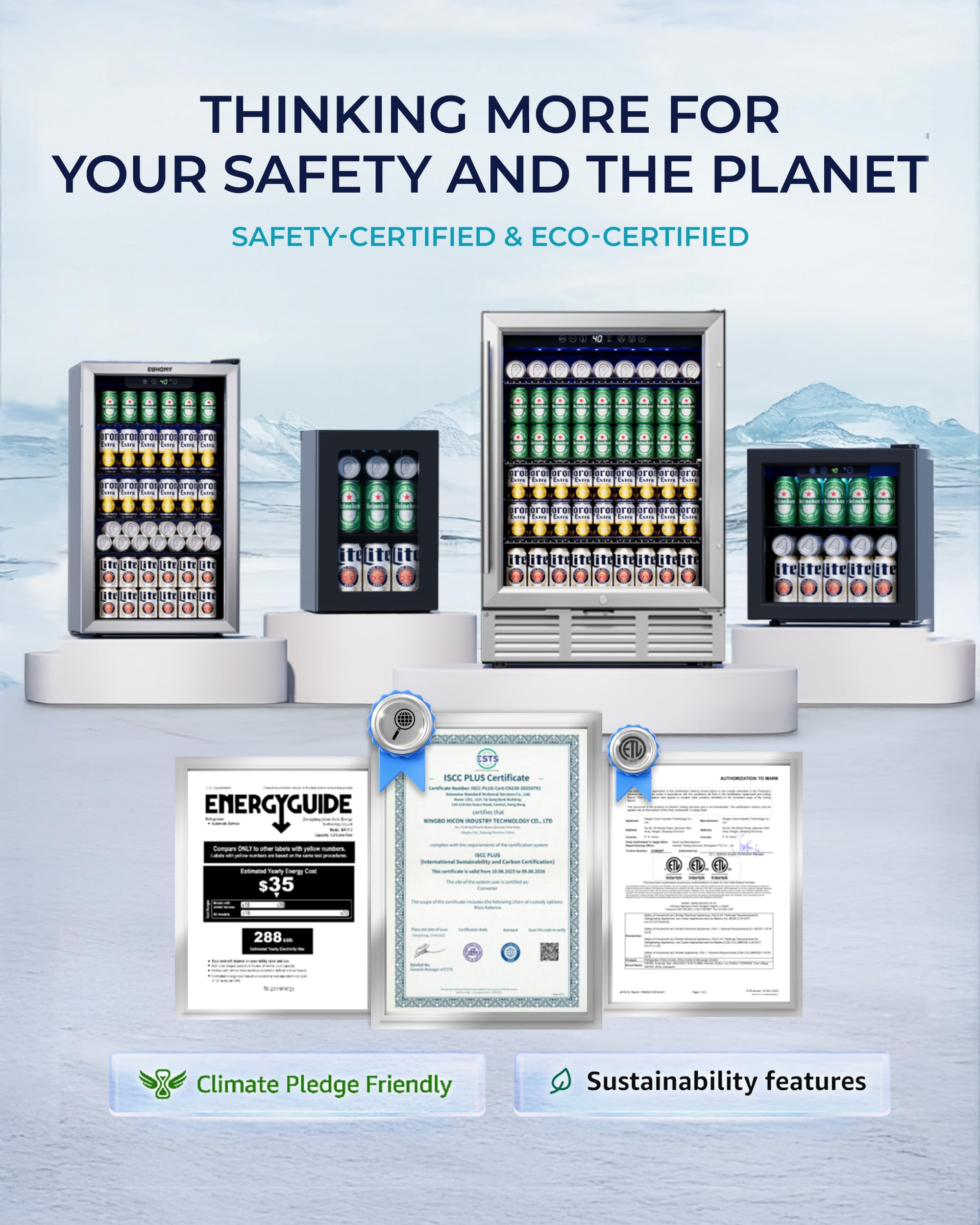 lNTELLIGENT CONTROL - Euhomy Beer and Wine Chiller offers a variable temperature selection ranging from (32°F to 61°F) to meet your multiple storage options. The digital display allows you to easily monitor and set whatever temperature you need. Unlike most beverage coolers, Euhomy’s beverage cooler use air-cooled frost-free technology, so all you have to do is enjoy your beverages