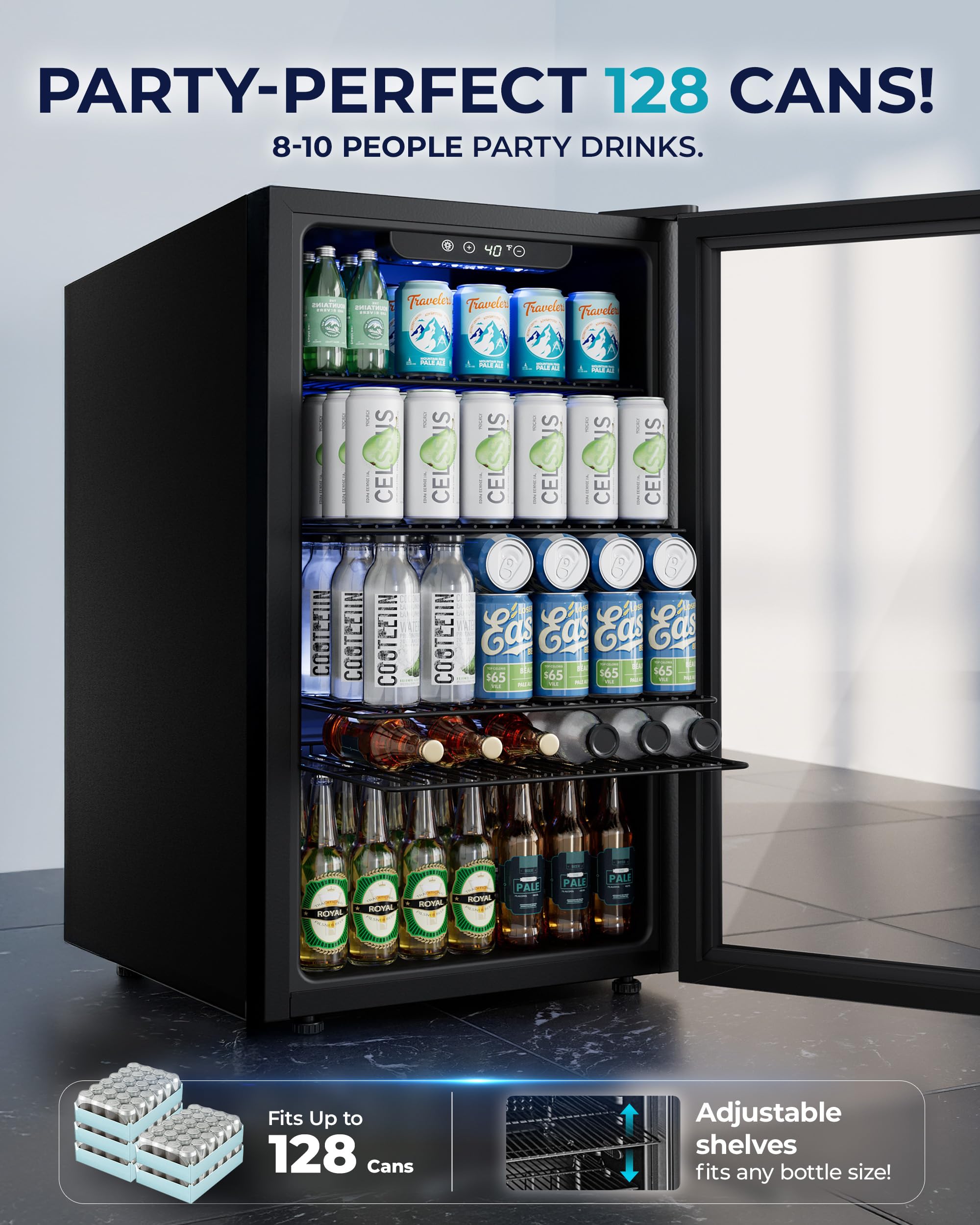 PERFECT CAPACITY - Euhomy 3.2 Cu.Ft mini fridge for bedroom, Beverage Refrigerator and Cooler is equipped with a Black frame, making this the one of the few black cooler on the market! Adjustable and stable shelves make you conveniently store options up to 128 cans of standardized soda, beer, or several bottles of wine with 4 removable shelves, either upright or on their sides. However many and whatever type of beverage you like, this cooler will keep them at the temperature you want