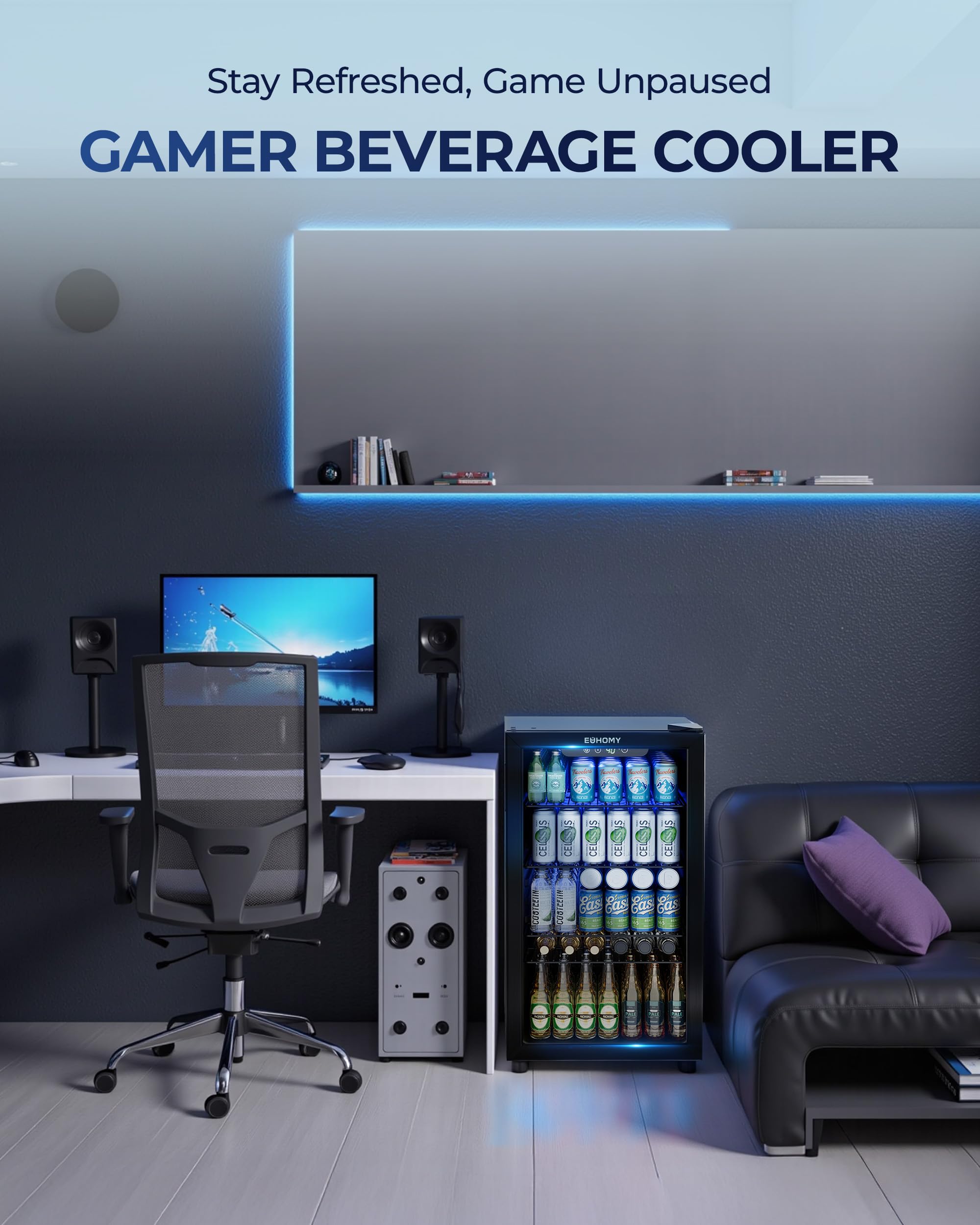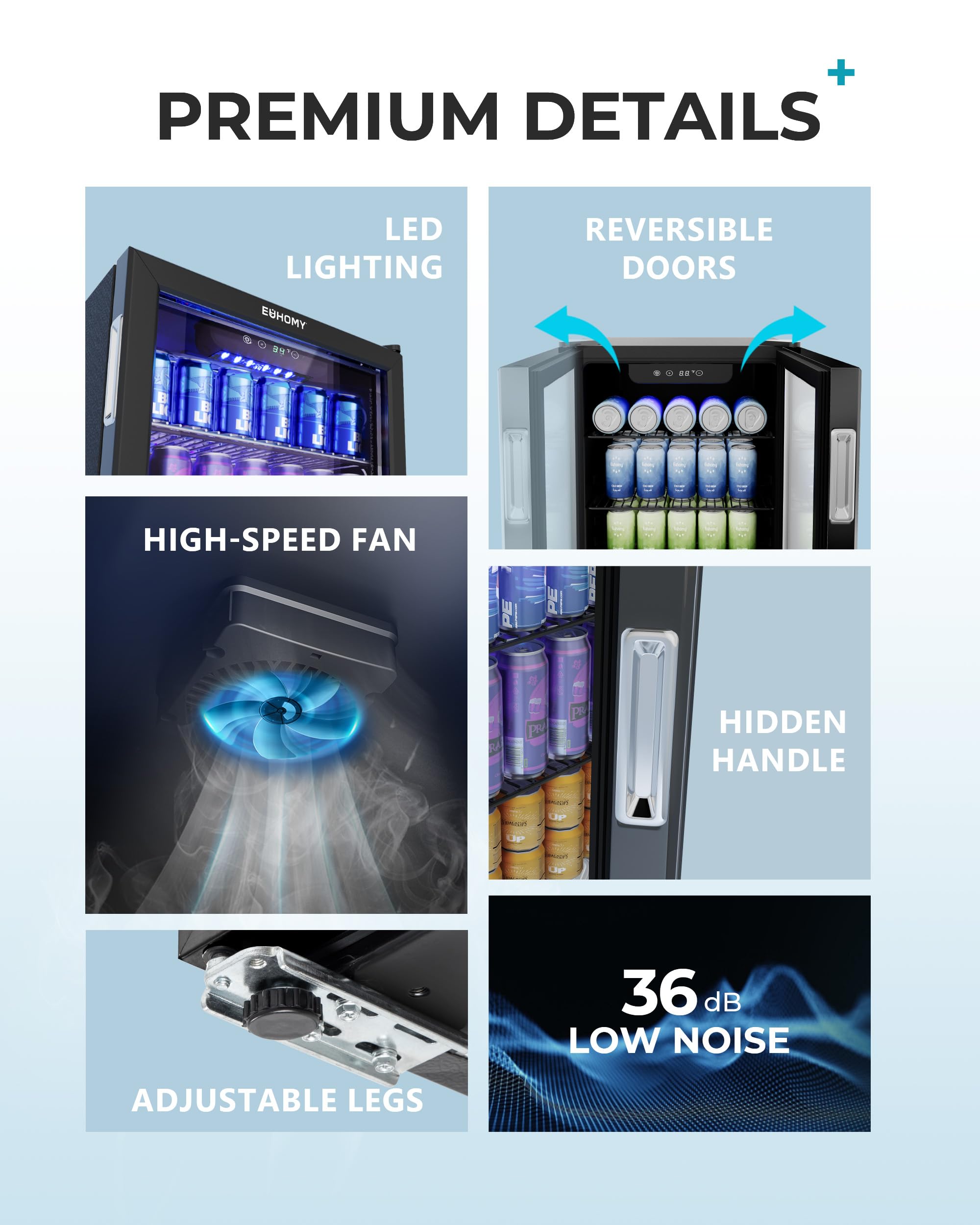 QUIET + ADVANCED COOLING SYSTEM - With a powerful compressor and internal air-cooled system, Euhomy’s mini fridge creates an evenly cooled space by ensuring that air flows throughout the entire beverage center.In addition, ultra quiet cooler of beverage cooling machine doesn’t affect your daily rest or working. With our cooler, you won’t just enjoy cold drinks, you’ll have a quiet atmosphere too