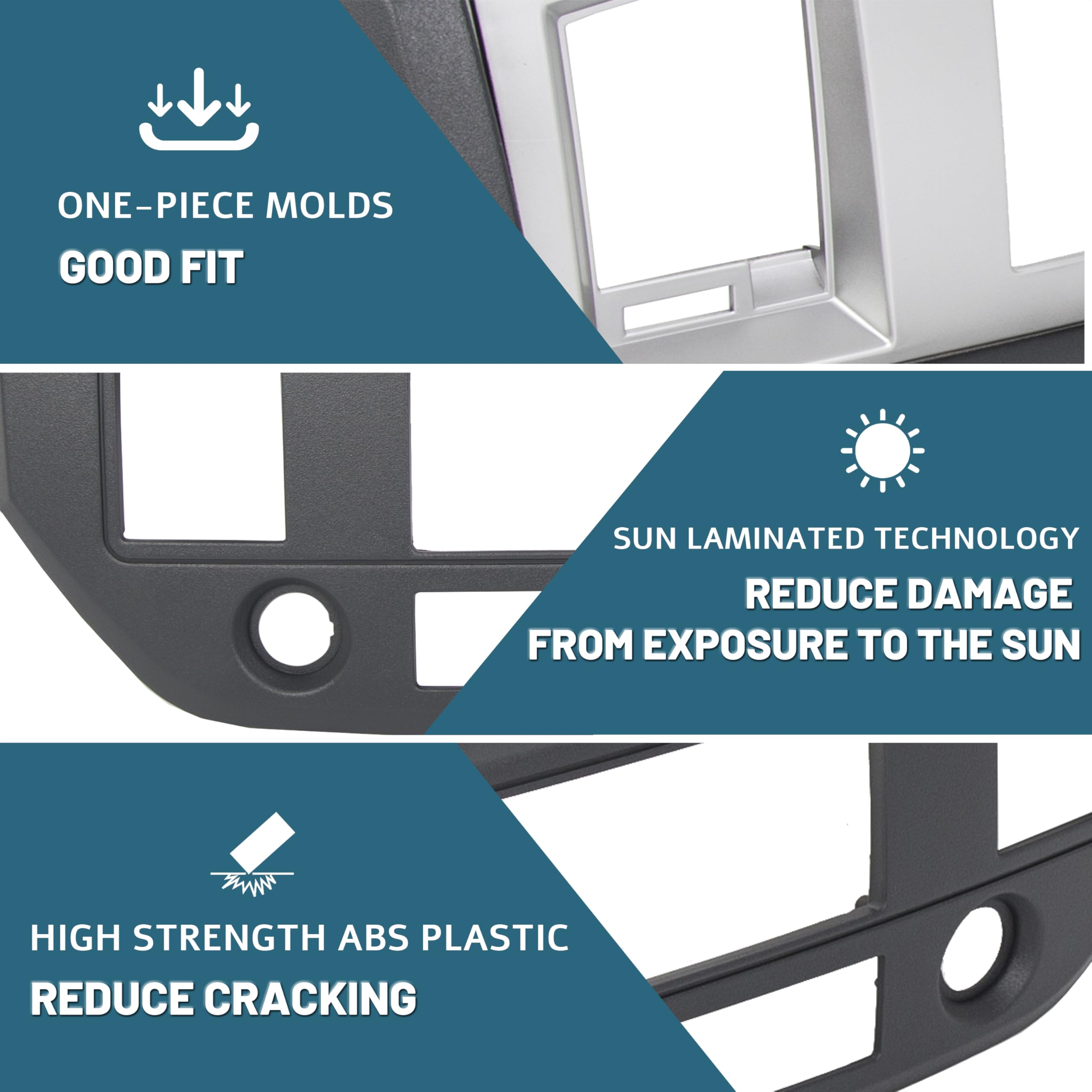 Features: Used to replace worn Double din housing that have been damaged before. Made of good ABS plastic, more durable. The silver and slate gray exterior enhances the car's aesthetics. In addition, it can bring you an excellent driving experience. (Our bezels did not come with a cigarette lighter or vent)