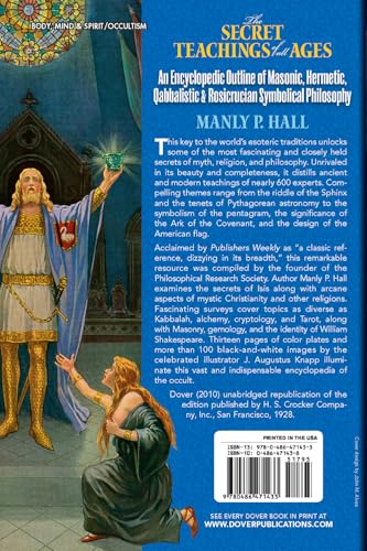 Acclaimed by Publishers Weekly as "a classic reference, dizzying in its breadth," this vast and indispensable encyclopedia of the occult explores ancient mythology, philosophy, and religion. Discover the key to the world's esoteric traditions, and unlock some of the most fascinating and closely held secrets of myth, religion, and philosophy. Unrivaled in its beauty and completeness, this classic reference distills ancient and modern teachings of nearly 600 experts. Compelling themes range from the riddle of the Sphinx and the tenets of Pythagorean astronomy to the symbolism of the pentagram, the significance of the Ark of the Covenant, and the design of the American flag. World-renowned expert Manly P. Hall examines the secrets of Isis along with arcane aspects of supernatural phenomena, mystic Christianity, and other religions. The Secret Teachings of All Ages is a fascinating survey covering topics as diverse as Astrology and the Zodiac, American Indian symbolism, Egyptian ceremonial magic and sorcery, Kabbalah, alchemy, cryptology, and Tarot, along with Masonry, gemology, and the identity of William Shakespeare. Hundreds of entries range from classical antiquity and oracles, to Islamic and Christian history, the arcane rituals of Druids, Freemasons, Rosicrucian doctrines and tenets, alchemists, other secret societies. 6" x 9", 736 pages include 16 pages of color plates, 100 black-and-white illustrations, an extensive bibliography, and a complete index. Shop Dover for classic, historical, and general interest books that reveal the hidden mysteries behind secret societies, the supernatural, esoteric philosophies, and other fascinating subjects such as black magic, vampirism, and witchcraft.
