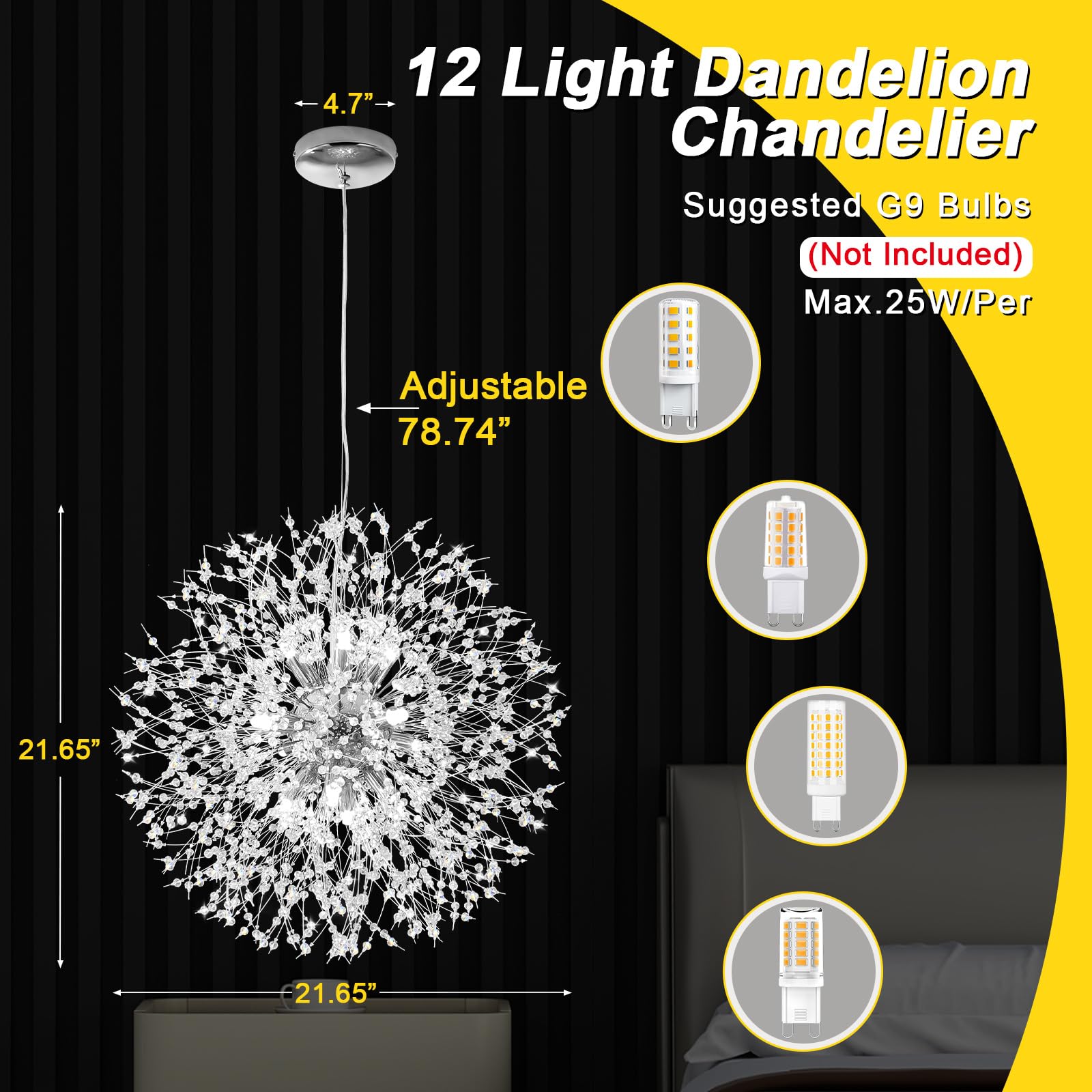 BULBS and dimmable:The different lighting effects shown in the picture depend on the light bulb you are using. Bulb Base: G9/110-120 V(Bulbs NOT included). Dimmable: It is dimmable when used with dimmable bulb and compatible dimmer switch (Not included)