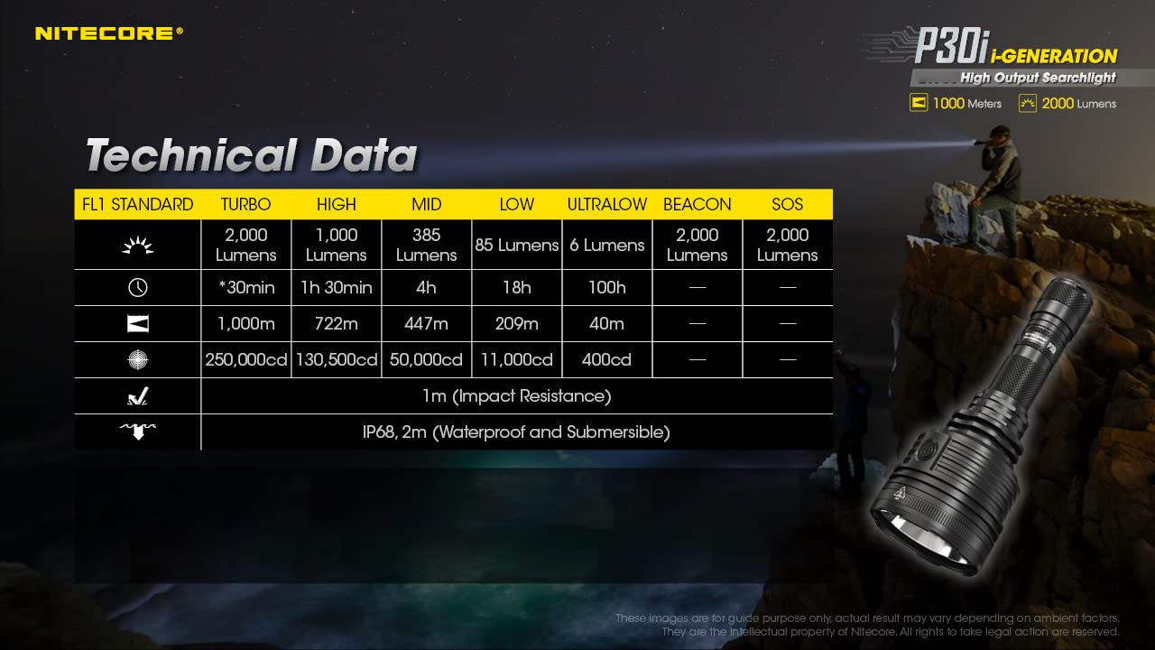 ULTRA LONG THROW FLASHLIGHT - The P30i has a 2000 lumen beam that can reach up to 1093 yards of throw, making it an indispensable companion for hunting, search and rescue, or exploration.