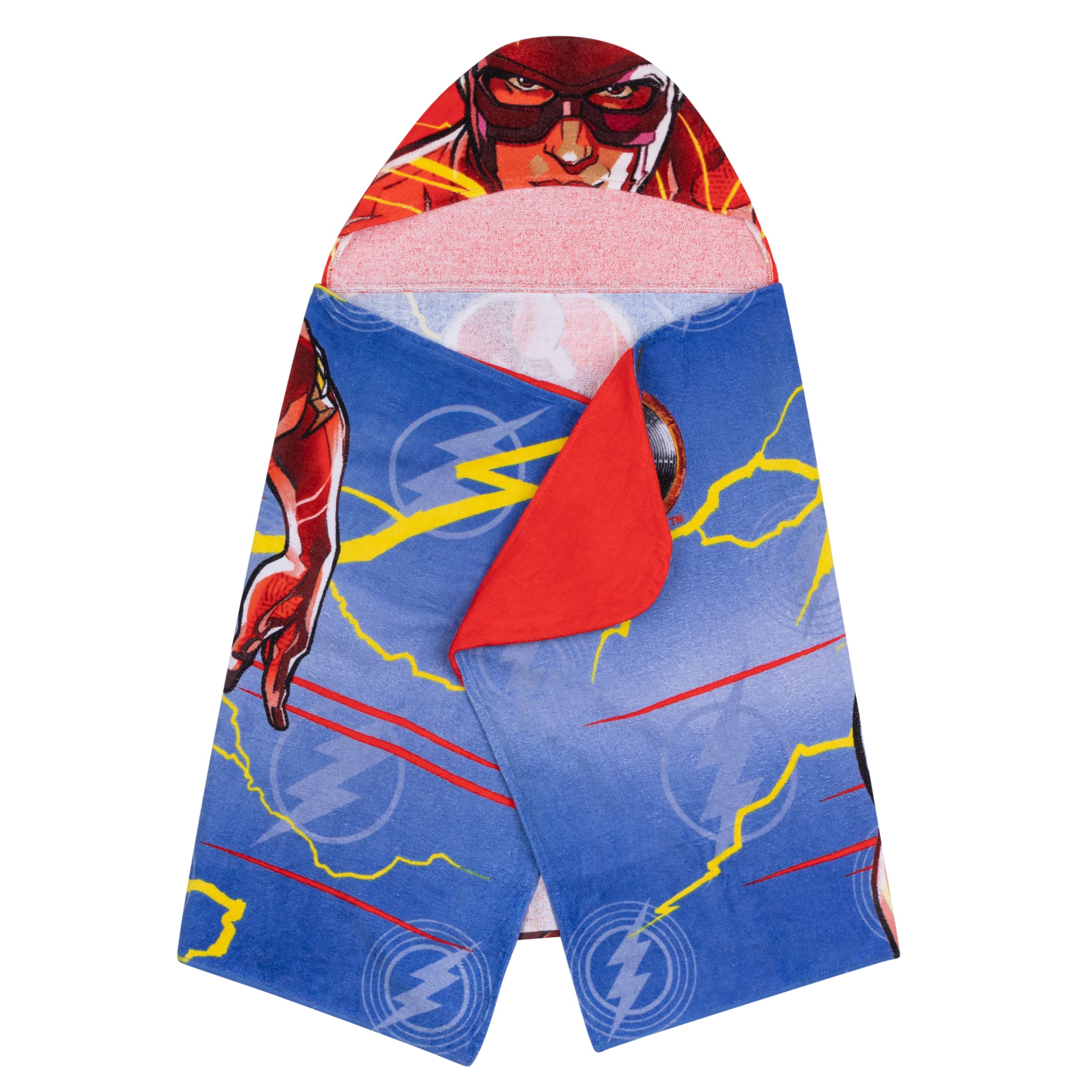 THE FLASH DESIGN: Kids can dry off at the speed of lightning with this cozy hooded towel wrap.