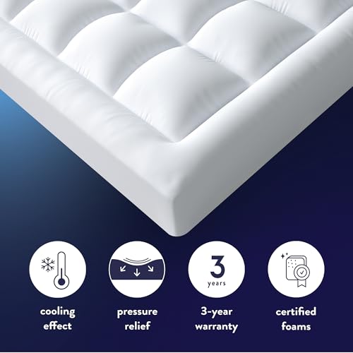 Upgrade your sleep experience with this irresistibly cozy topper and pad combo. Perfect to give your mattress an instant refresh without going through the hassle of replacing it, this set includes a shape-conforming egg crate foam topper and a fluffy mattress pad. The foam topper’s unique design promotes airflow to keep you cool, delivers targeted pressure relief, and ensures undisturbed rest. Paired with the plush mattress pad that fits snugly over both your topper and mattress like a fitted sheet, this duo creates the perfect balance of softness and support, so you always wake up refreshed and ready to take on the day