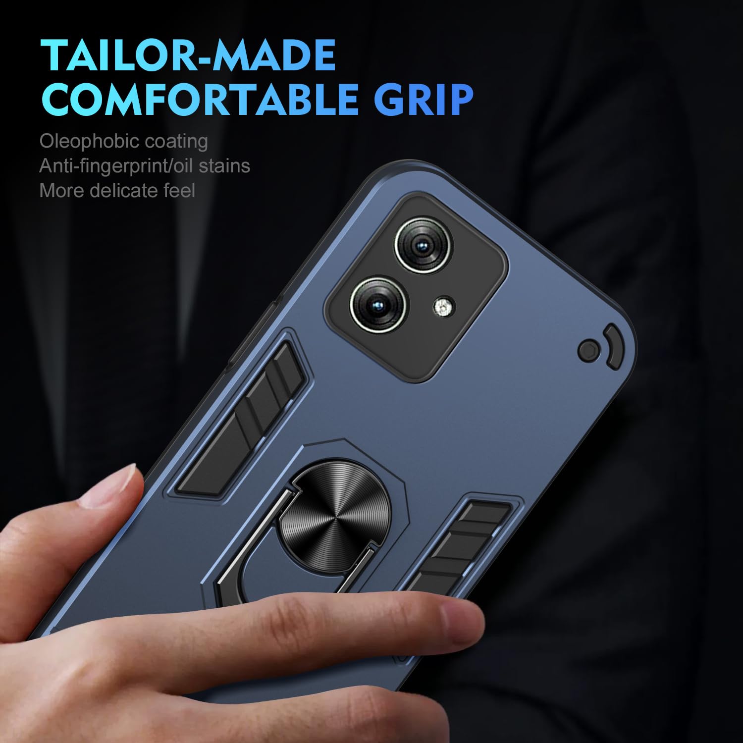 Compatible with Motorola Moto G54 5G Case,Compatible with Motorola Moto G54 5G Built-in bracket Car Magnetic Shockproof and anti-drop Phone Case Cover Blue
