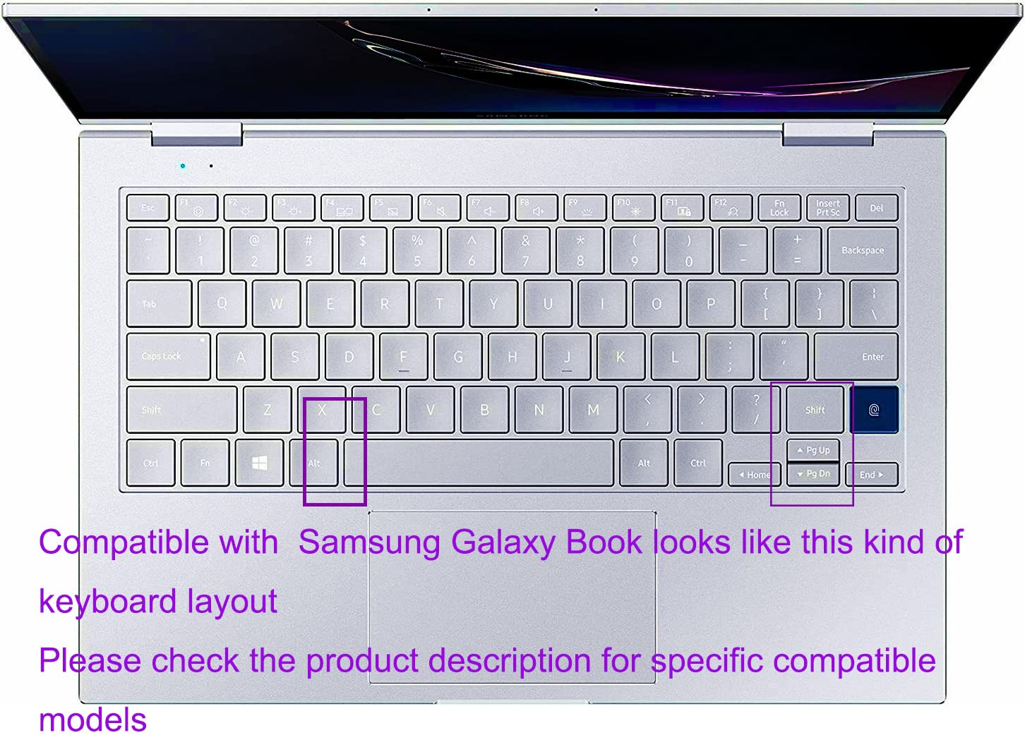 Good quality and personalized keyboard skin cover protector compatible for Samsung Galaxy Book 13.3 inch Compatible for: 13.3 inch Samsung Galaxy Book Flex 2 Alpha 2-in-1 Laptop NP730QDA-KA1US NP730QDA-KA3US 13.3 inch Samsung Galaxy Book Flex Alpha 2-in-1 Touchscreen Laptop NP730QCJ-K01US NP730QCJ-K02US 13.3 inch Samsung Galaxy Book Flex α Laptop NP730QCJ-K04US NP730QCJ-K03US 13.3 inch Samsung Galaxy Book Ion Laptop NP930XCJ-K01US NP930XCJ-K02US 13.3 inch Samsung Galaxy Book Flex Laptop NP930QCG-K01US NOT Compatible for: - 13.3 inch Samsung Galaxy Book S NP767XCM-K01US NP767XCM-K02US -13.3 inch 2020 Samsung Galaxy Chromebook XE930QCA-K01US - Samsung Galaxy Book Ion NP950XCJ-K01US NP950XCJ-K02US 15.6 inch - Samsung Galaxy Book Flex 15.6 inch NP950QCG-K03US