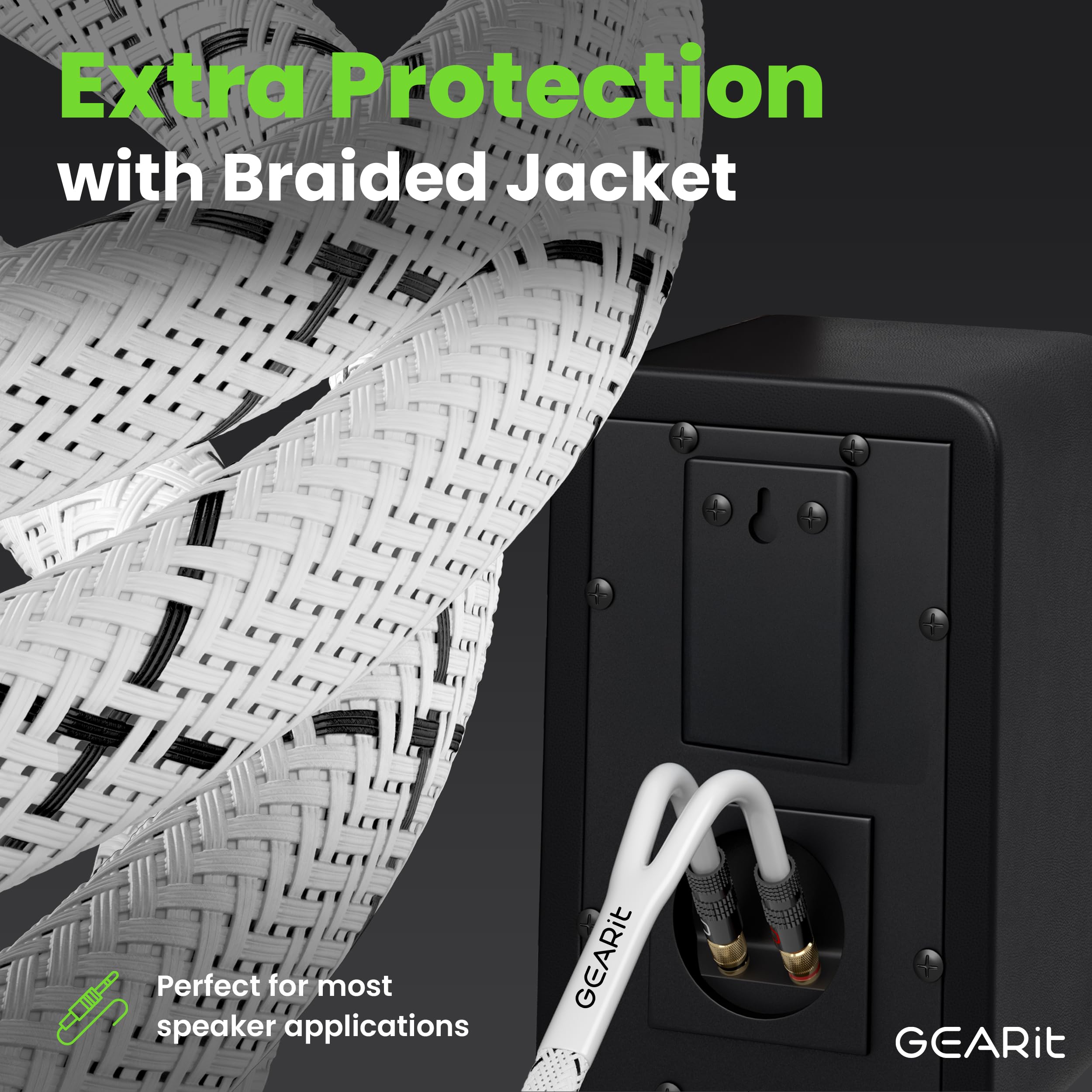 High-end look with braided jacket wrapped around speaker wire, giving them extra protection to your speakers' finish allowing Pro-grade sound quality yet retaining the flexibility of ordinary speaker wire