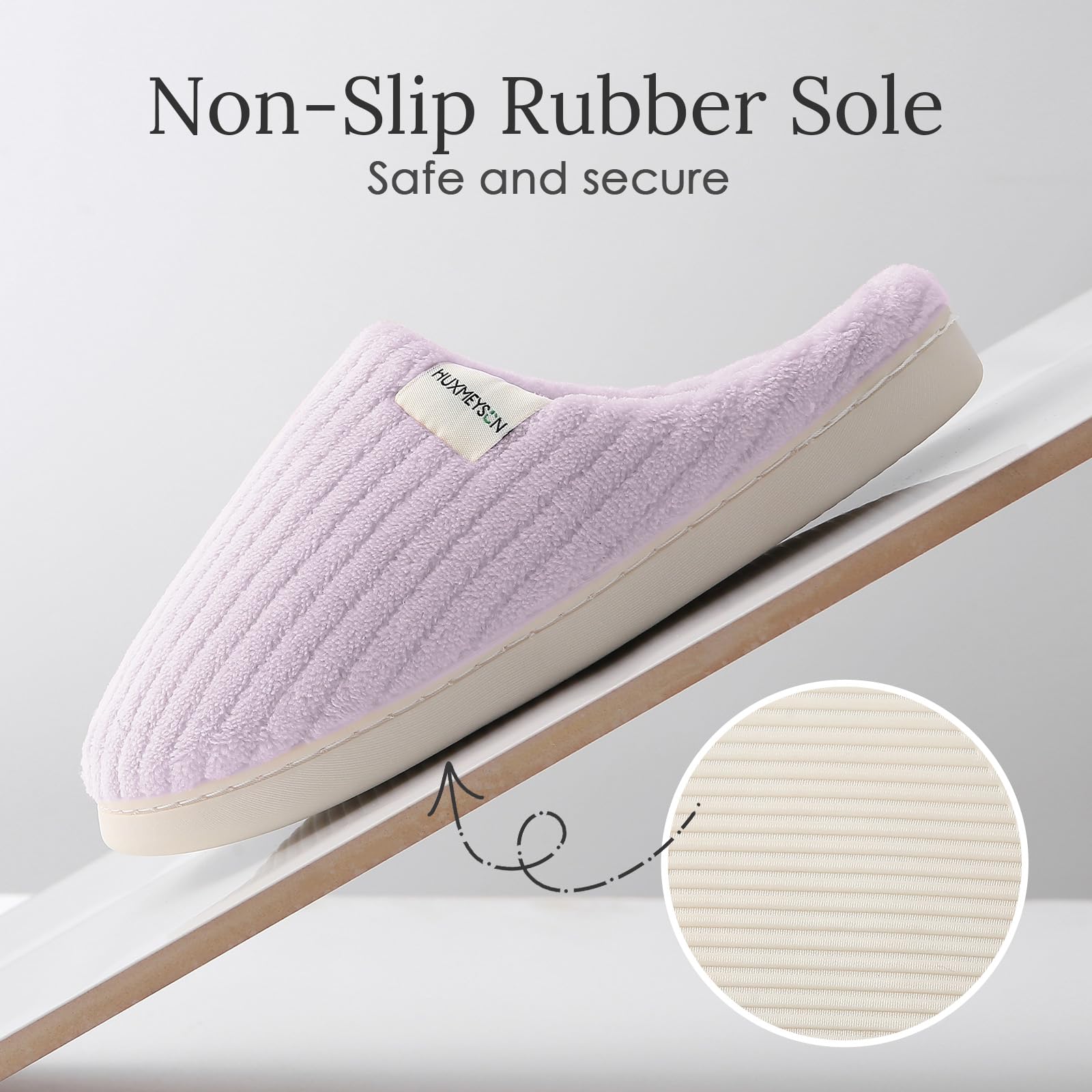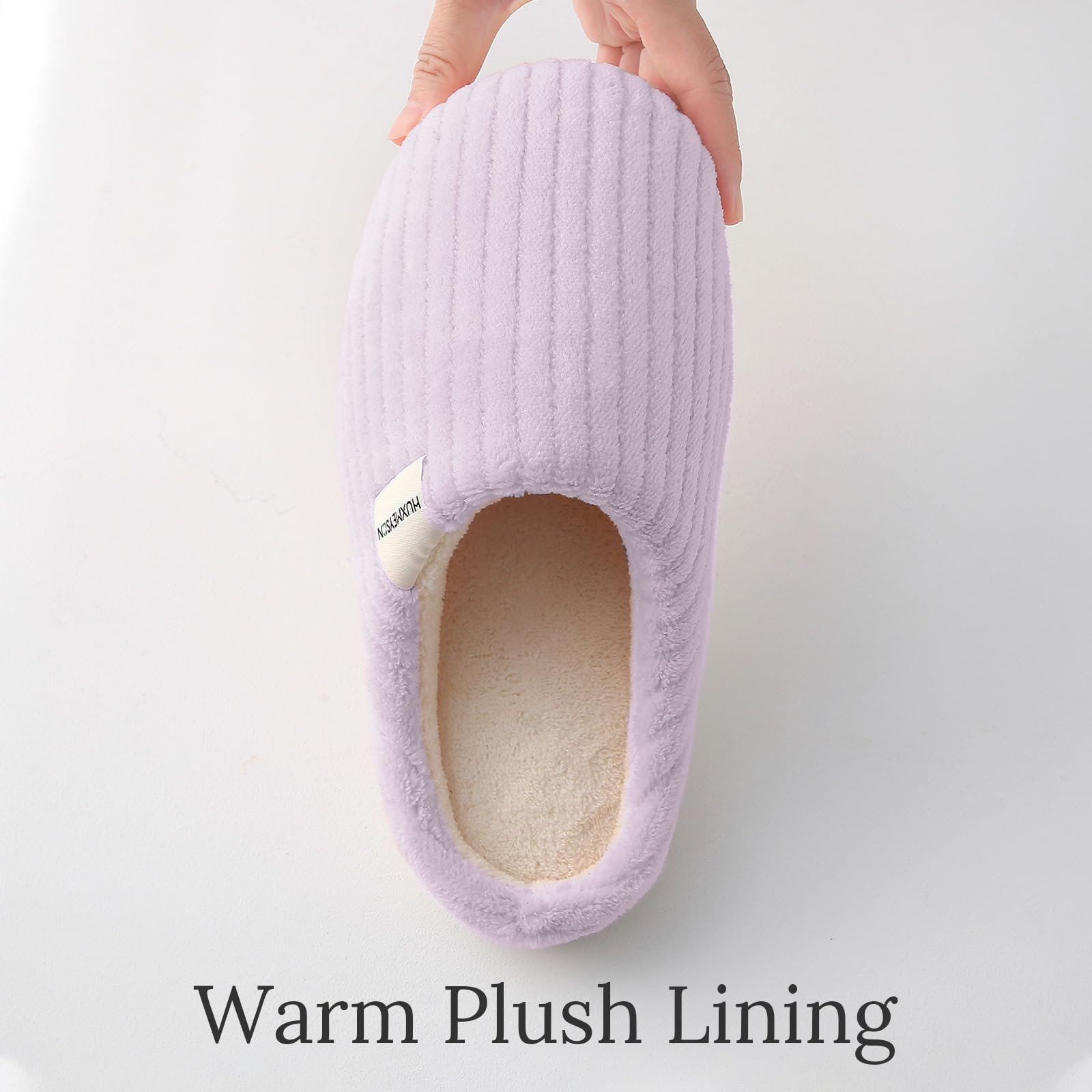 COMFORTABLE PLUSH: Our womens slippers feature faux plush, which is dense and ultra-soft, giving you a warm and cozy touch in cold weather. At the same time, the fixation of plush is added to effectively reduce the shedding of plush