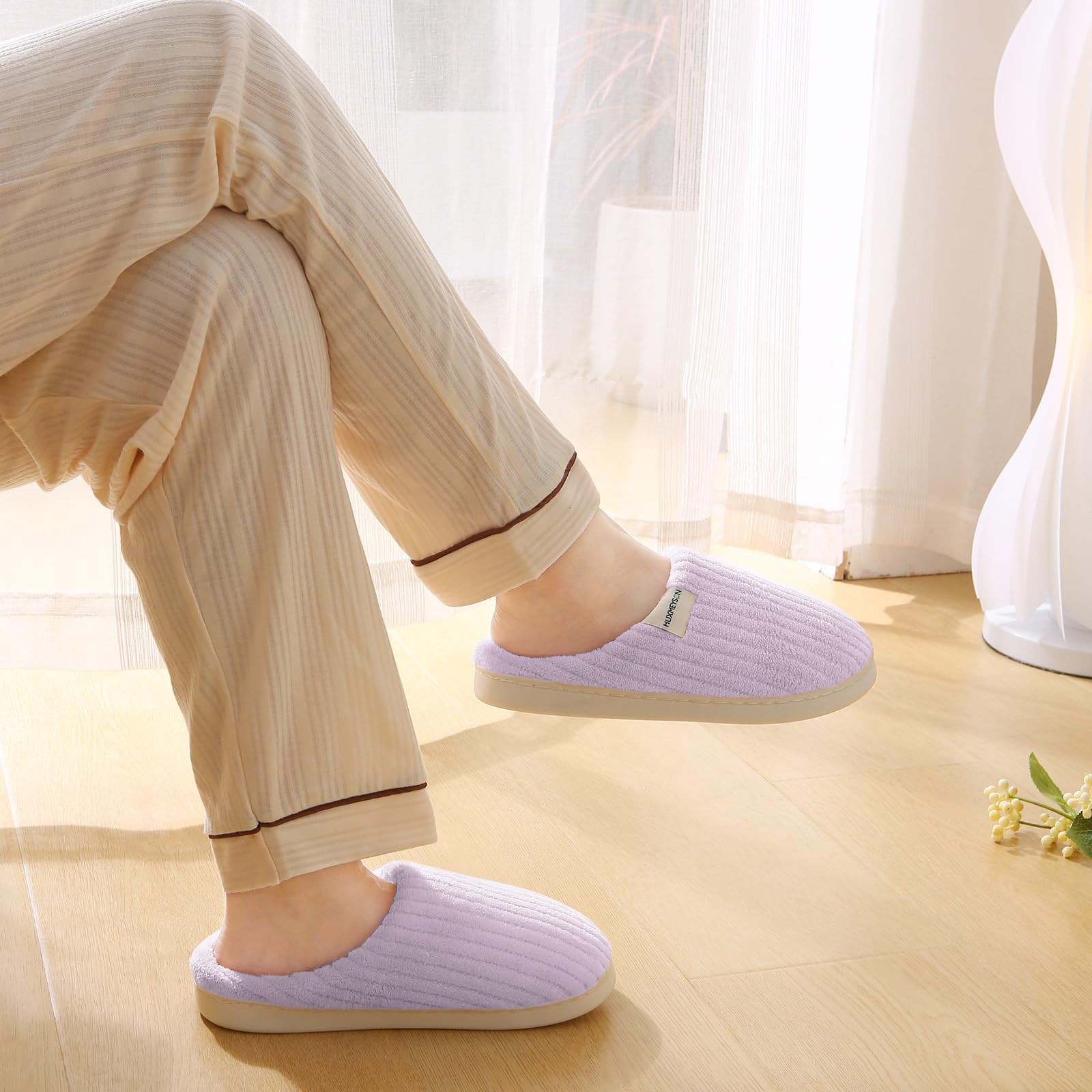 HIGH ELASTIC SPONGE: The house slippers are made of high elastic sponge insole, which fits your feet and provides you with support and cushioning, soft insole to absorb the impact, every step is like stepping on a cloud, which can protect your feet from pain