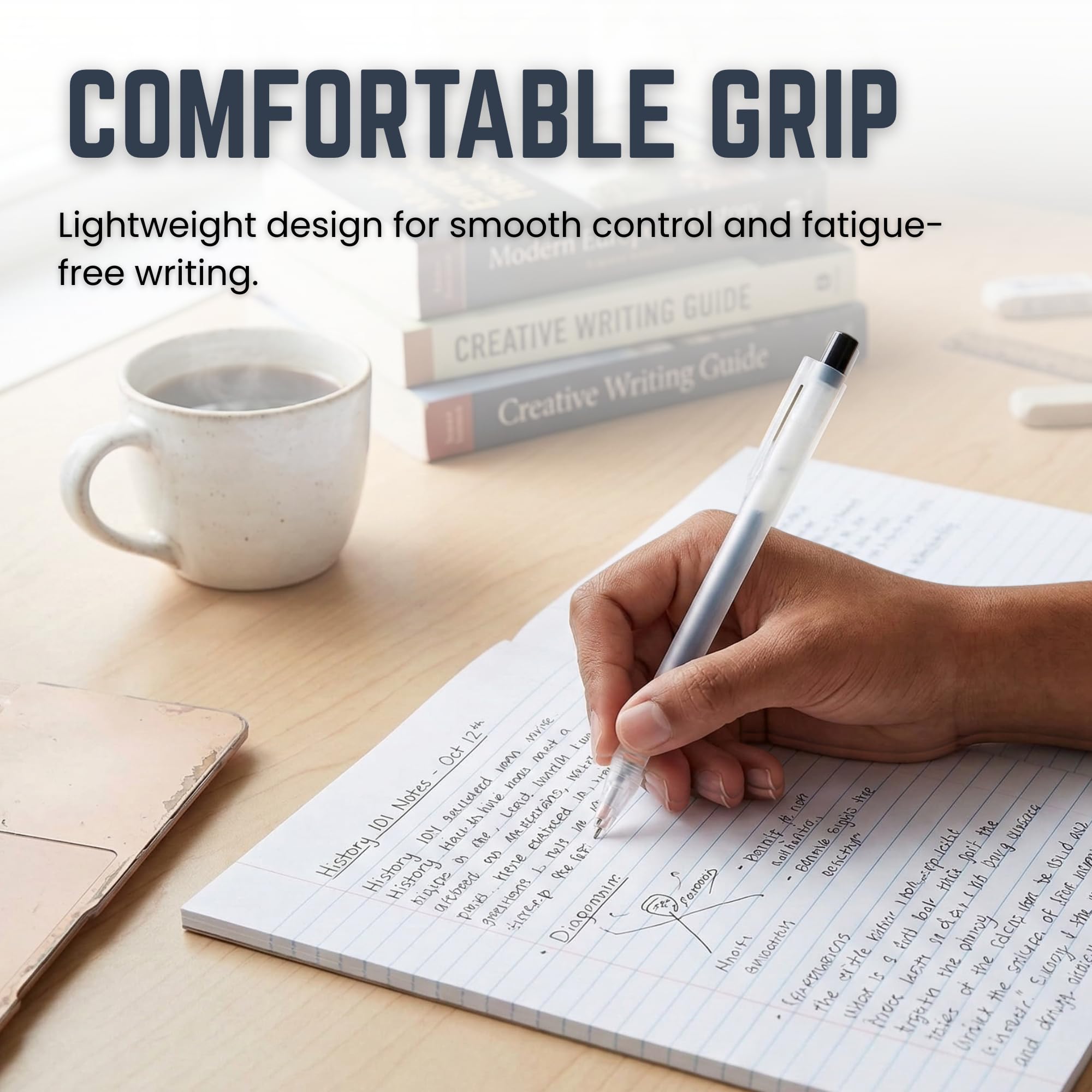 Minimalist Aesthetic - These good-quality pens feature a clear barrel that allows you to monitor ink levels easily. The lightweight & balanced body gives a comfortable grip, making them suitable for long work sessions.