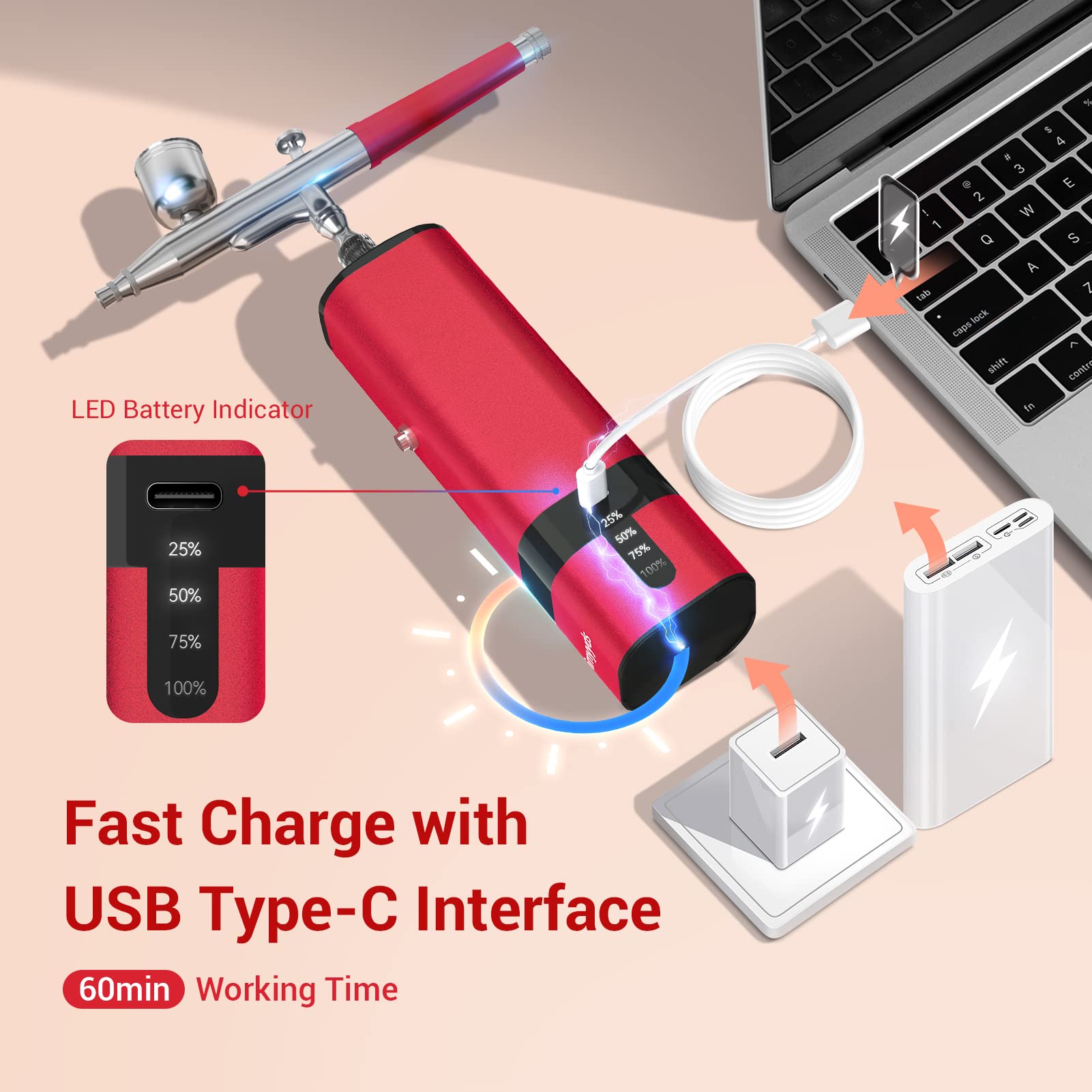 【Two Connection Modes】 A braided air hose is provided in our cordless airbrush kit. Except connecting our portable compressor with the double action airbrush directly, you can also connect our compressor with the airbrush through the air hose. You will enjoy the great convenience when you are working