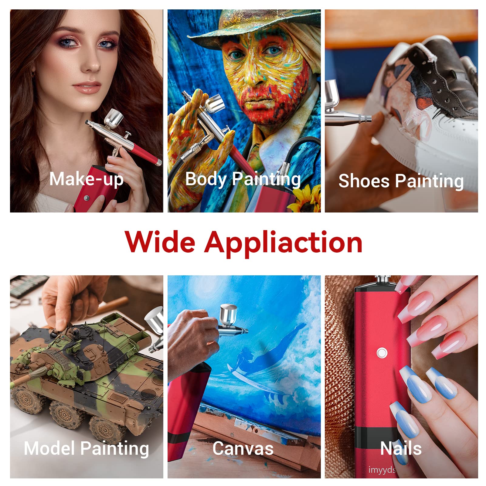 【Portable Air Brush Kit】 It has small size and light weight which allows you hold easily and carry it anywhere you want. Also, this airbrush for painting can be put in the backpack or even your pocket, which makes it more convenient to be used everywhere in your daily life