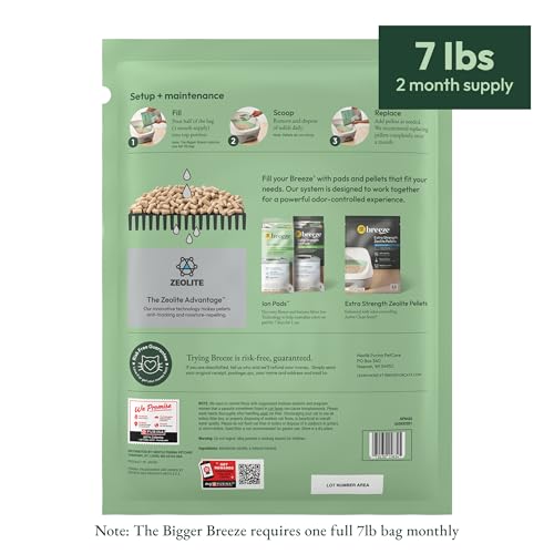 Breeze Litter Pellets: Unscented cat Zeolite litter pellets allow urine to pass through and dehydrates and leaves solid waste on the top for powerful odor control and easy scooping.
