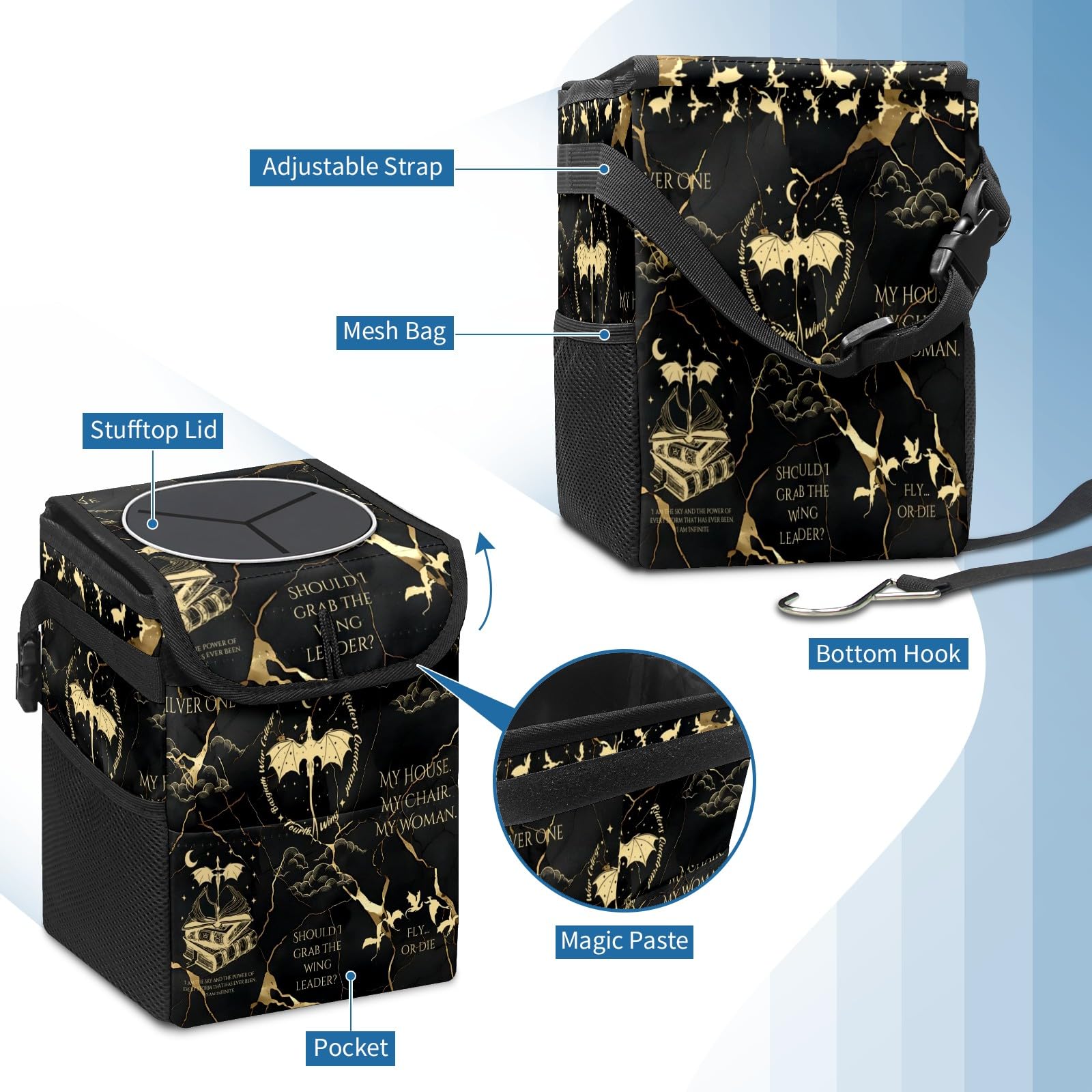 Perfect size:Car trash can size: 9.5x 6.3x 6.7 inches, sufficient space, enough for car trash. This car trash can can be folded up when not in use for better storage.