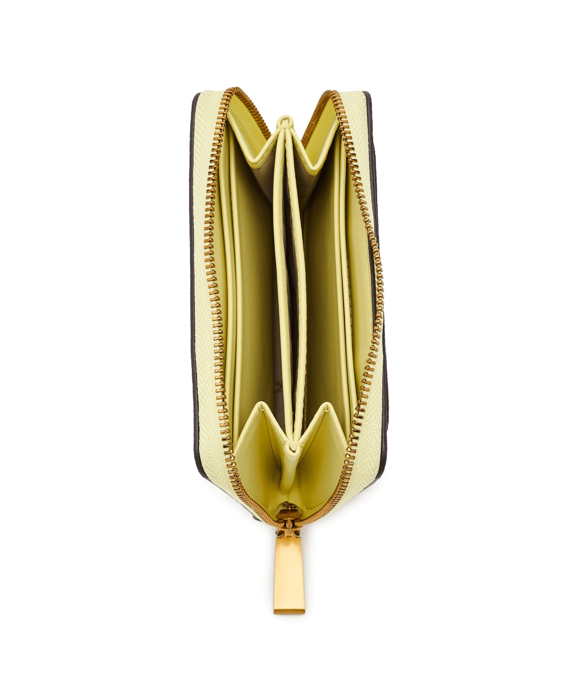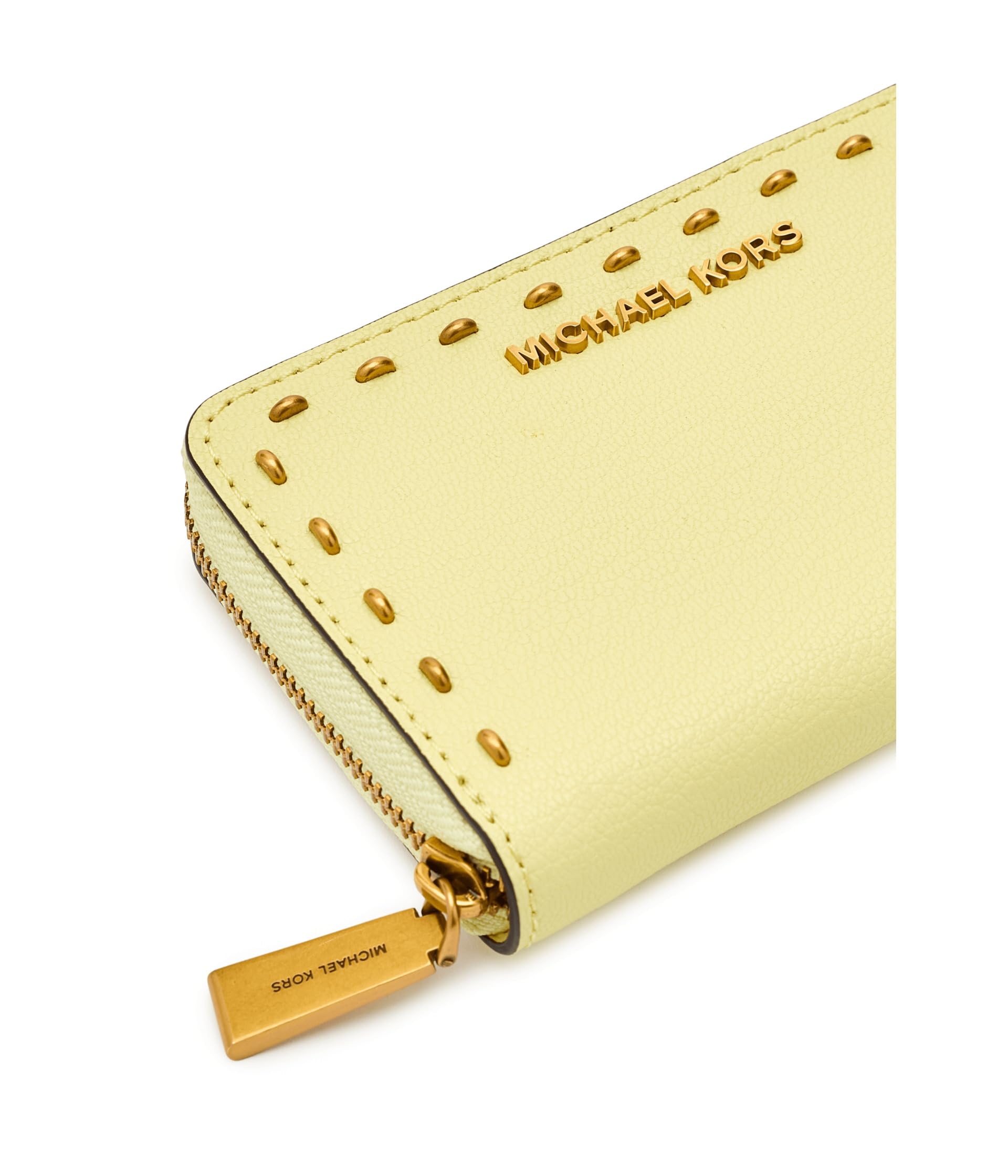 Description Designed in a compact zip-around silhouette, this pebbled leather wallet opens to reveal multiple card slots and space for your cash. We love how an exterior slip pocket offers quick access to your ID. Slip it into the coordinating tote bag, or a clutch come evening.