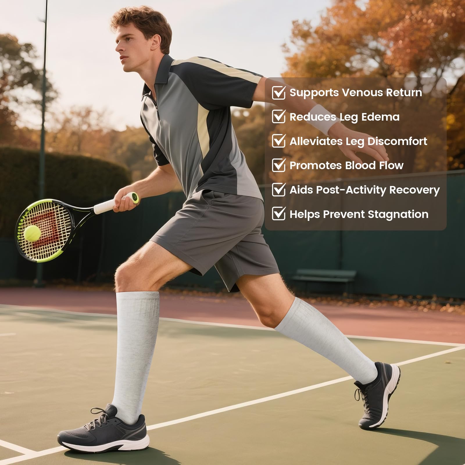 LEVSOX Wool Compression Socks for Women and Men 20-30mmHg Knee High Support Socks for Flying Nurses Pregnancy
