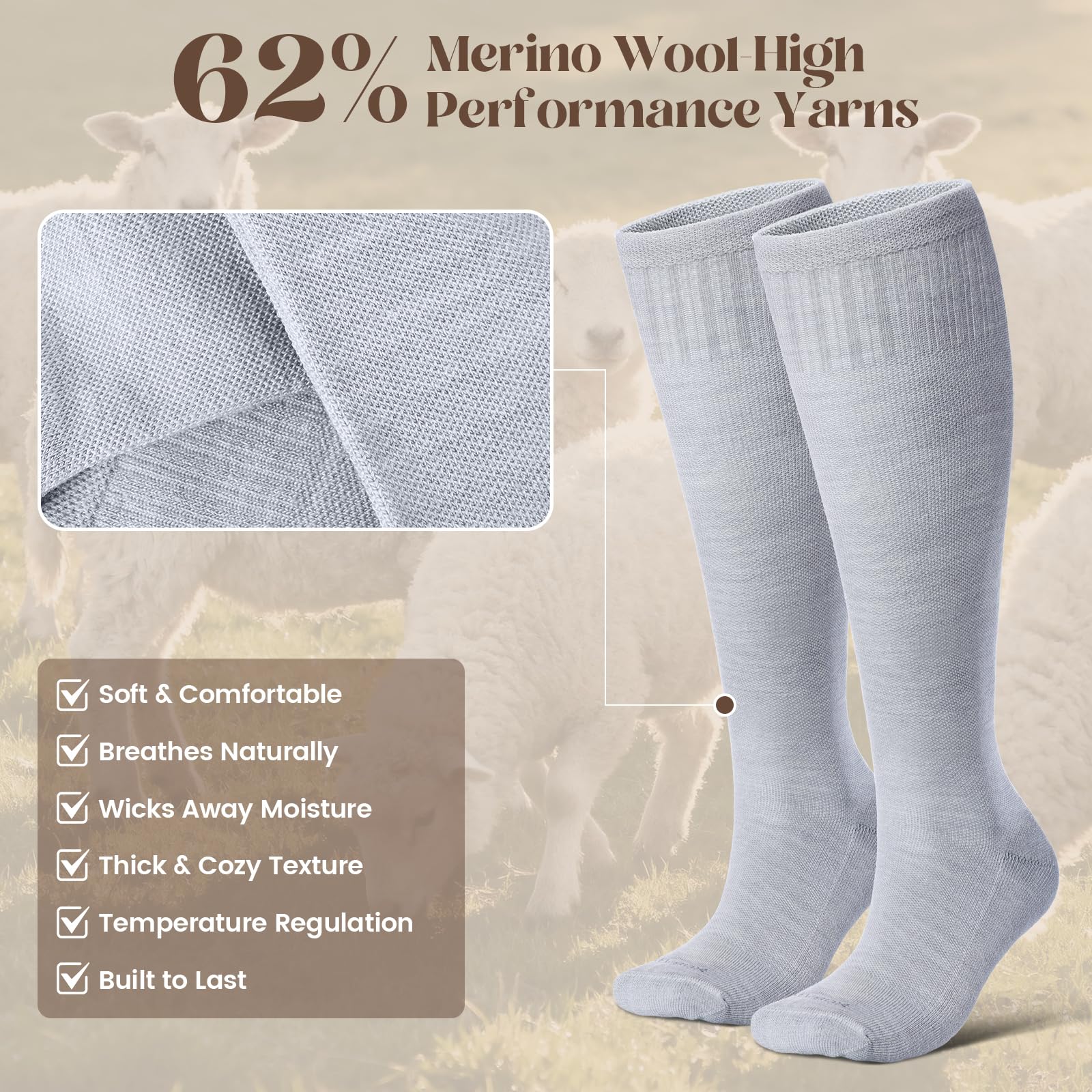 62% Merino wool high-performance fabric: Makes these thick compression socks softer and more breathable, helping regulate temperature to keep your feet warm and comfortable—ideal compression socks for men and women during daily wear