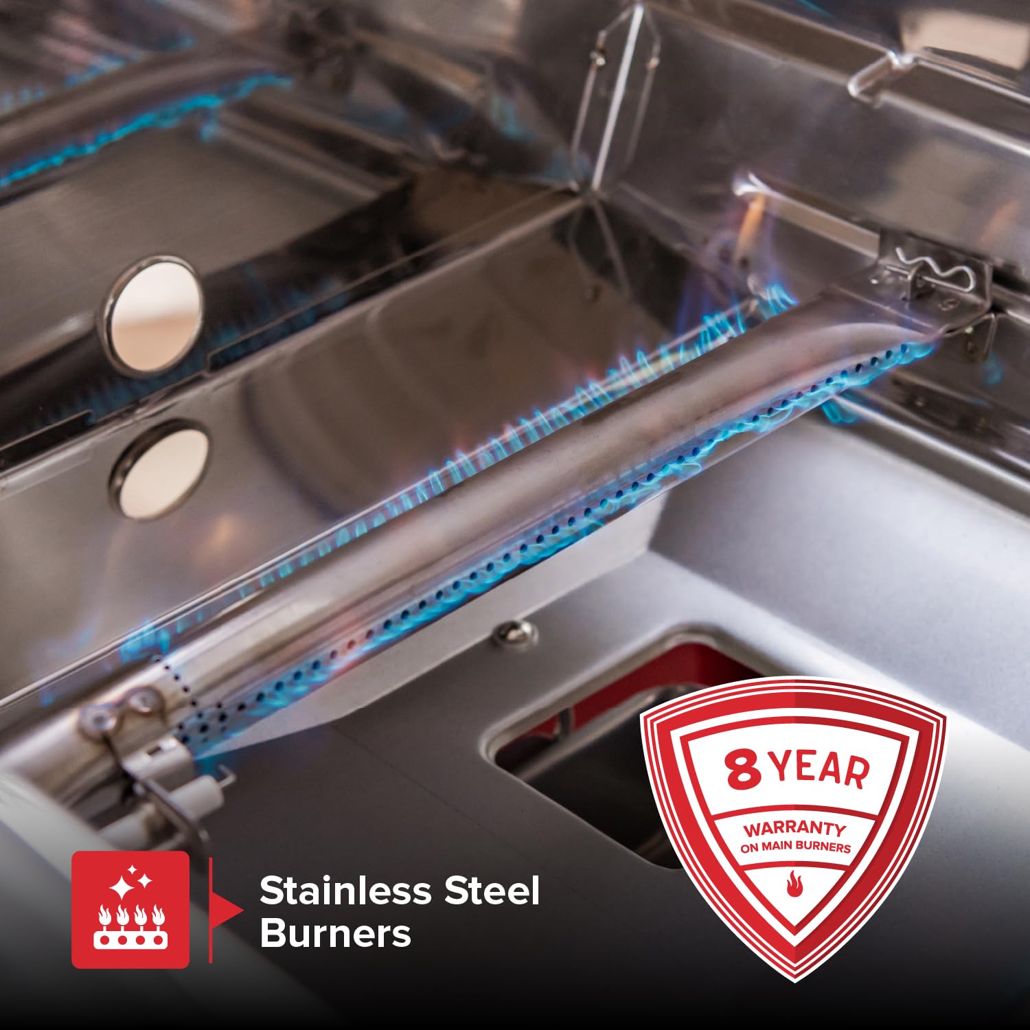 【DURABLE STAINLESS STEEL CONTROL PANEL】Rust-resistant, heat-resistant, and easy to clean, a stainless steel control panel ensures long-lasting performance, a sleek appearance, and reliable function, even under intense grilling conditions.