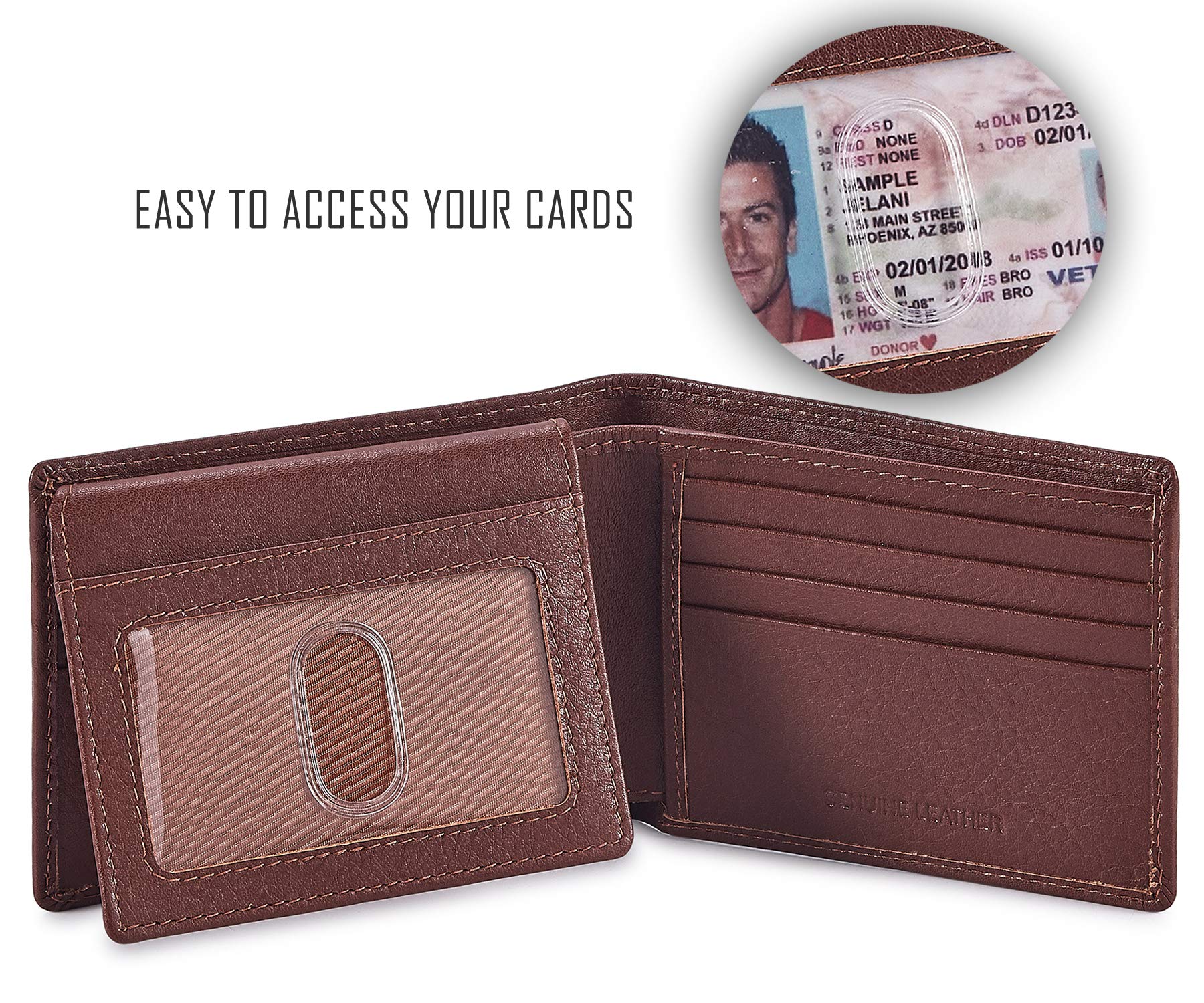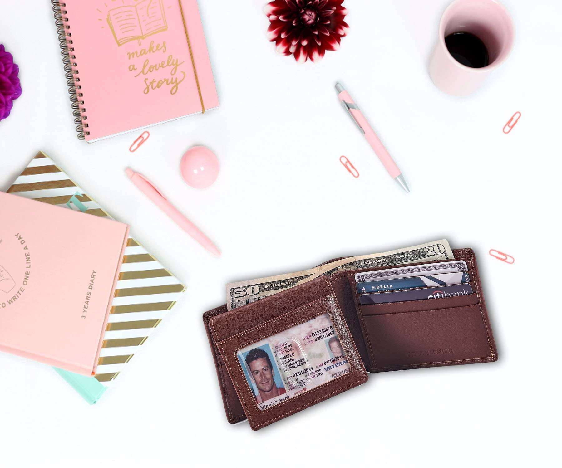 🪪 ONE WALLET FOR ALL YOUR NEEDS – SMART COMPACT SLEEK DESIGN: Includes two transparent ID slots for your driver’s license and work ID — ideal for quick access at airports, offices, or security checks. Smooth inner lining, reinforced edges, and flexible leather allow cards to slide in and out with ease. Making this bifold superb for travel and everyday use, keeping your cards safe and organized.