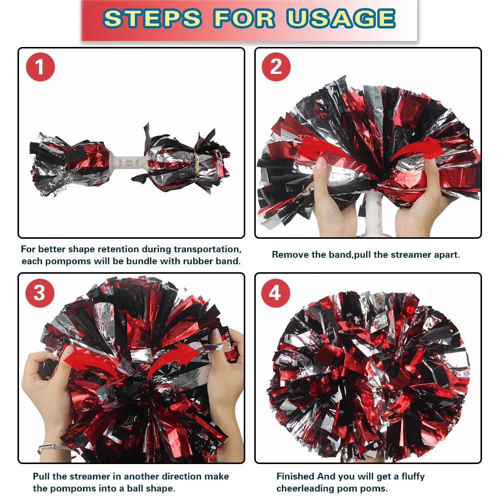 Upgraded Handle - The new handle is made of thickened plastic, it will not break easily. The trumpet-shaped baton design at both ends makes pompoms look more full, and the streamers are fixed stronger.
