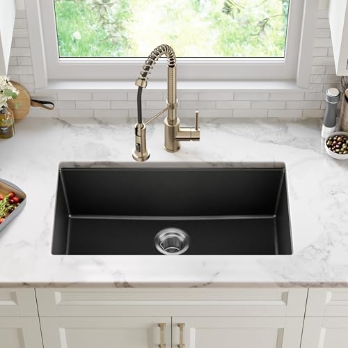 GRANITE KITCHEN SINK made from durable quartz composite that offers the elegant look of natural granite with resistance to impact, scratches, and shock – UNIVERSAL DESIGN with clean lines complements any kitchen style, from traditional to modern