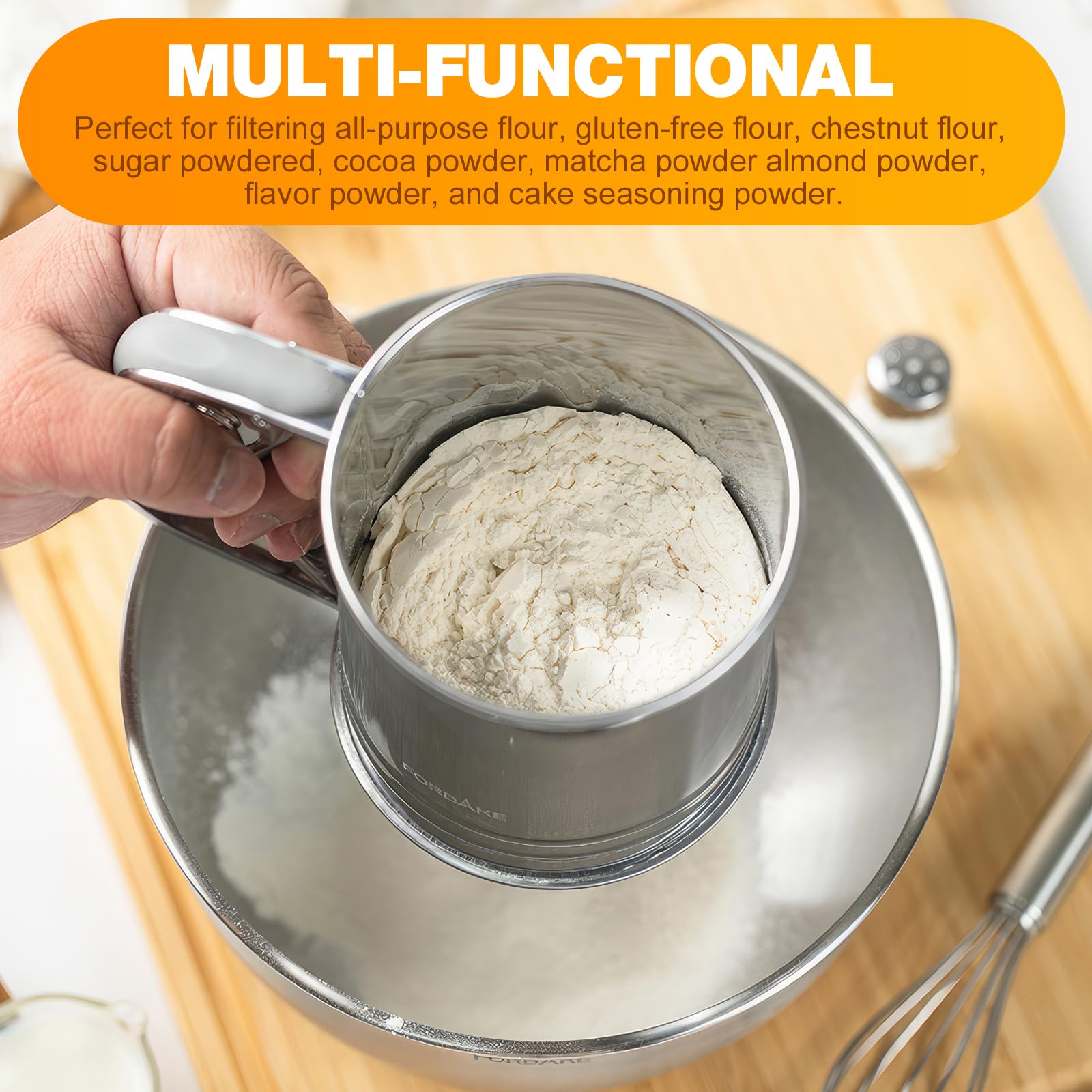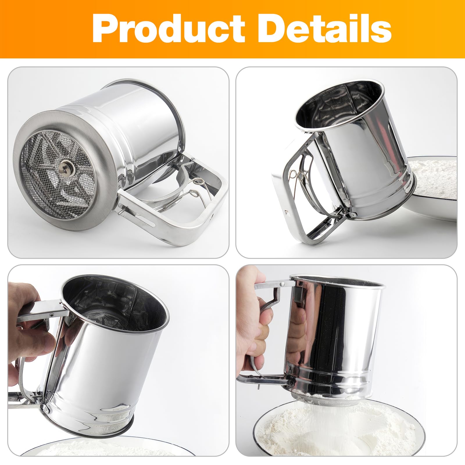 Premium Food-Grade Stainless Steel: Our 5-cup flour sifter is made from high-quality, rust- and corrosion-resistant food-grade stainless steel. Its sturdy and durable design ensures long-lasting use, making it a reliable tool for all your baking needs.
