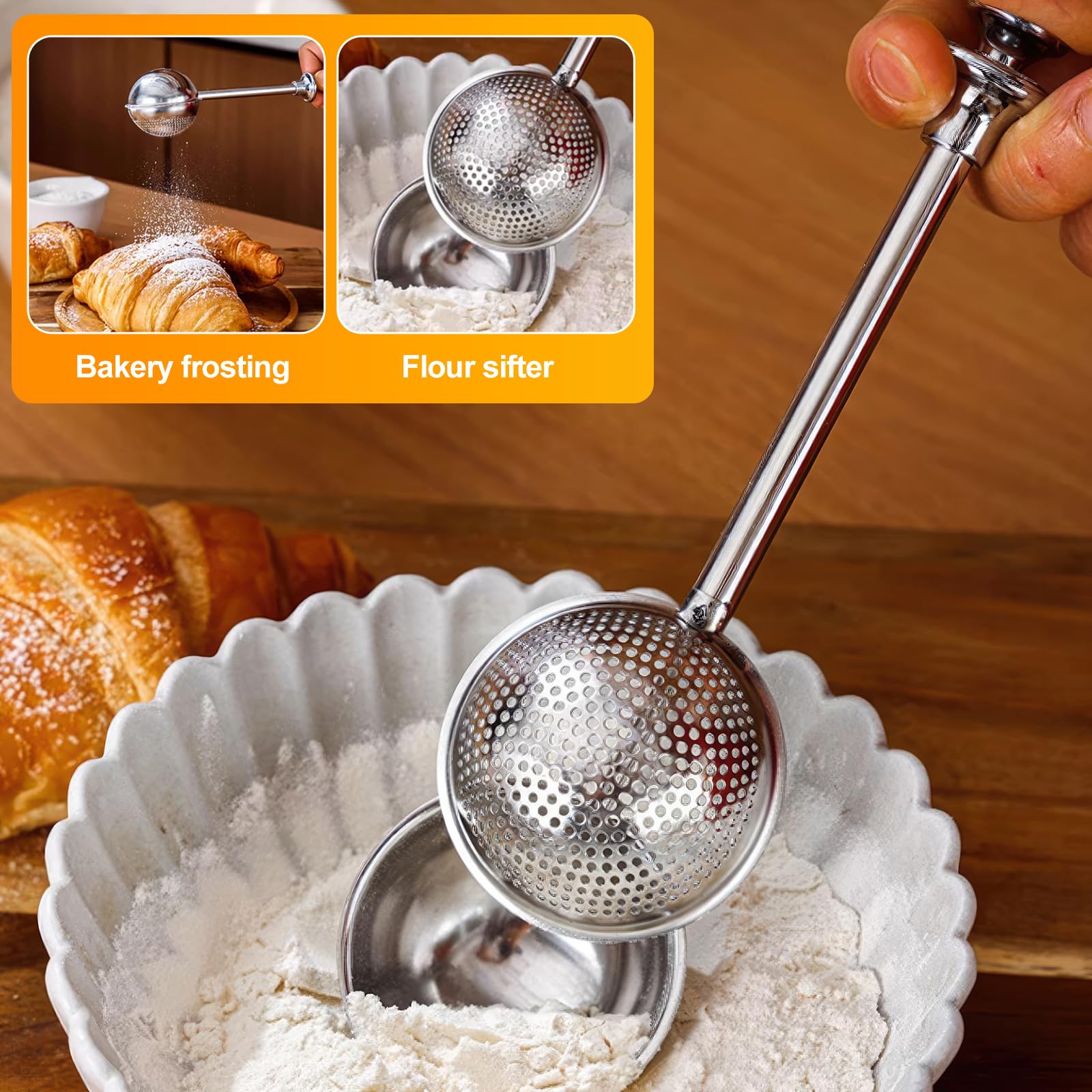 Easy to Use and Clean: Designed for hassle-free baking, our 5-cup flour sifter comes with a convenient spring-operated handle for effortless one-handed operation. The stainless steel construction makes cleaning a breeze—either wash it by hand or toss it in the dishwasher for a quick clean.