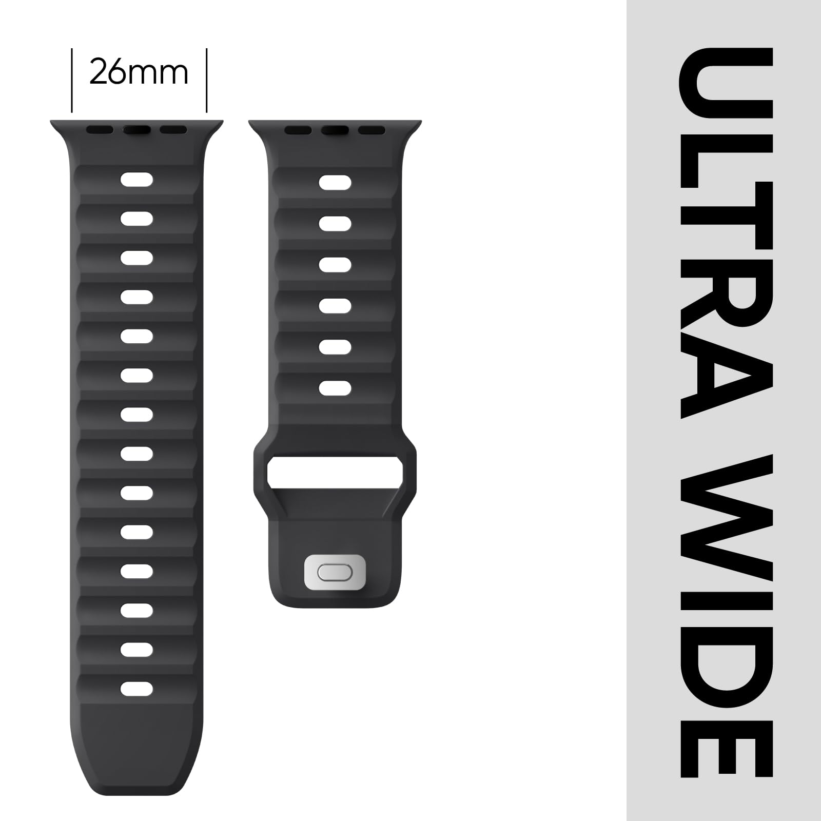 26mm Ultra Fit: Tailored for the big dials and bold souls, our apple watch ultra band is expanded to 26mm wide. Best match Apple Watch Ultra 3, Ultra 2, Ultra, Series 11 10 9 8 7 6 5 4 3 SE, for iWatch 49mm 46mm 45mm 44mm 42mm(Series 3). L fits 6.3"- 8.1" (160-205 mm) wrists; M for 5.9"- 7.7" (150-195 mm) wrists.