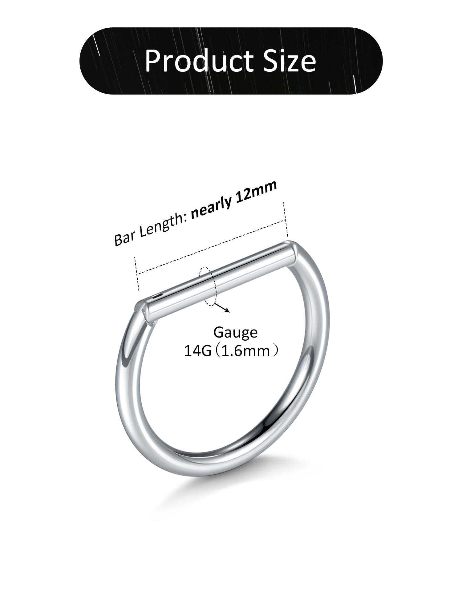 14g Nipple Rings: Bar Thickness: 1.6mm, Bar Length: 12mm. Please feel free to contact us by email if you need any assistance on choosing the right size for your piercings