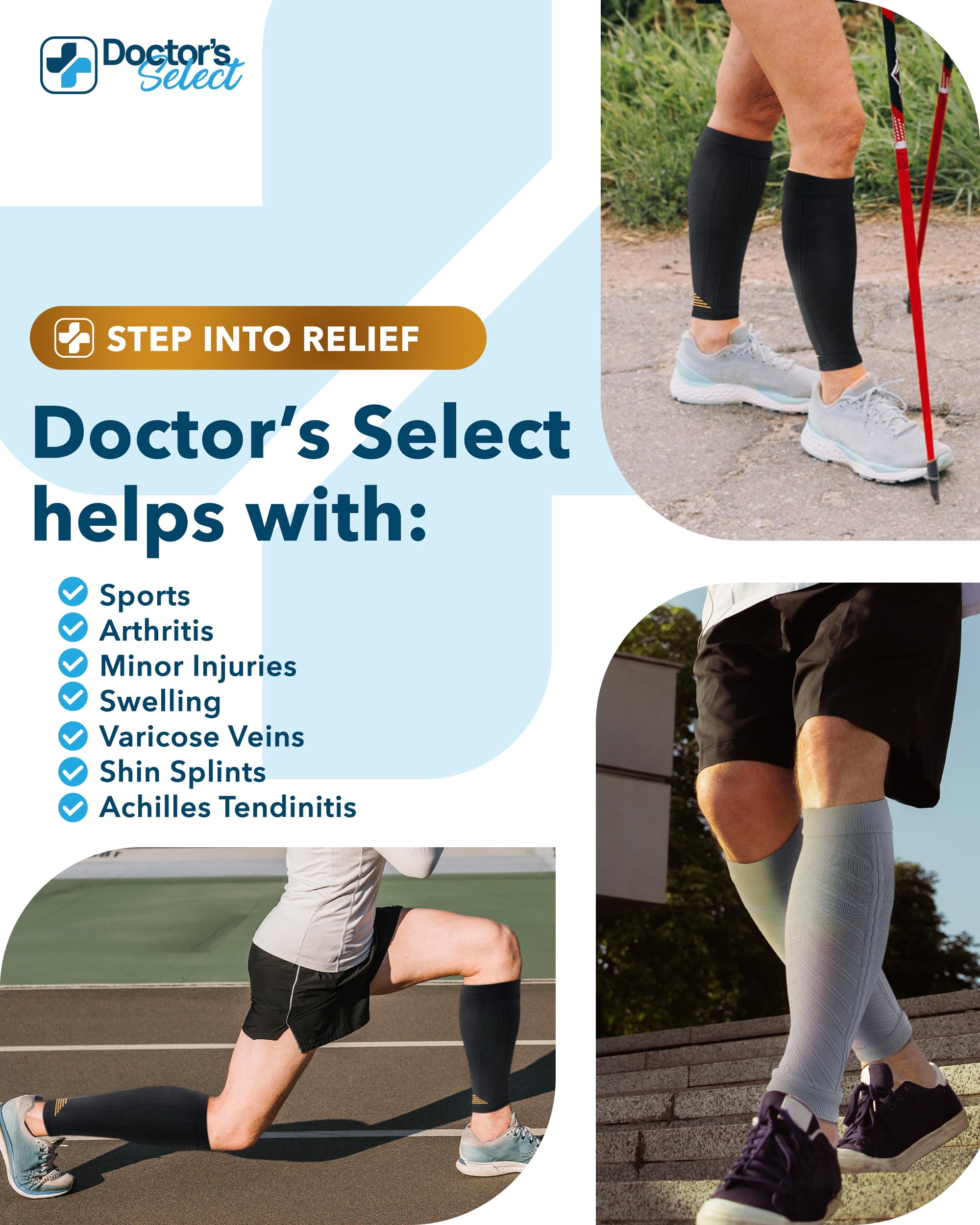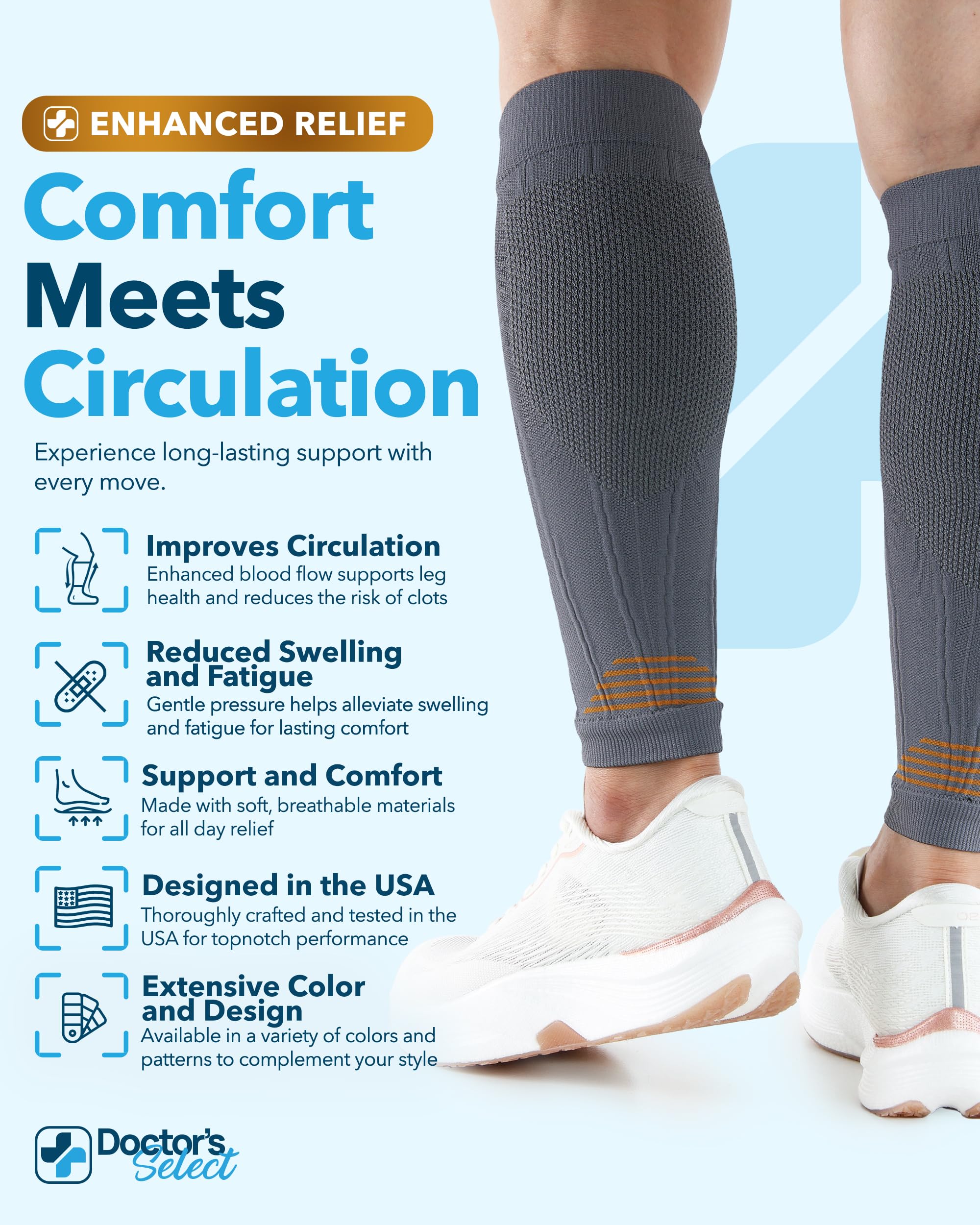Everyday Comfort for Your Legs - Engineered to promote circulation, these compression sleeves for legs offer support to help with leg issues such as varicose veins, shin discomfort, edema, and arthritis.