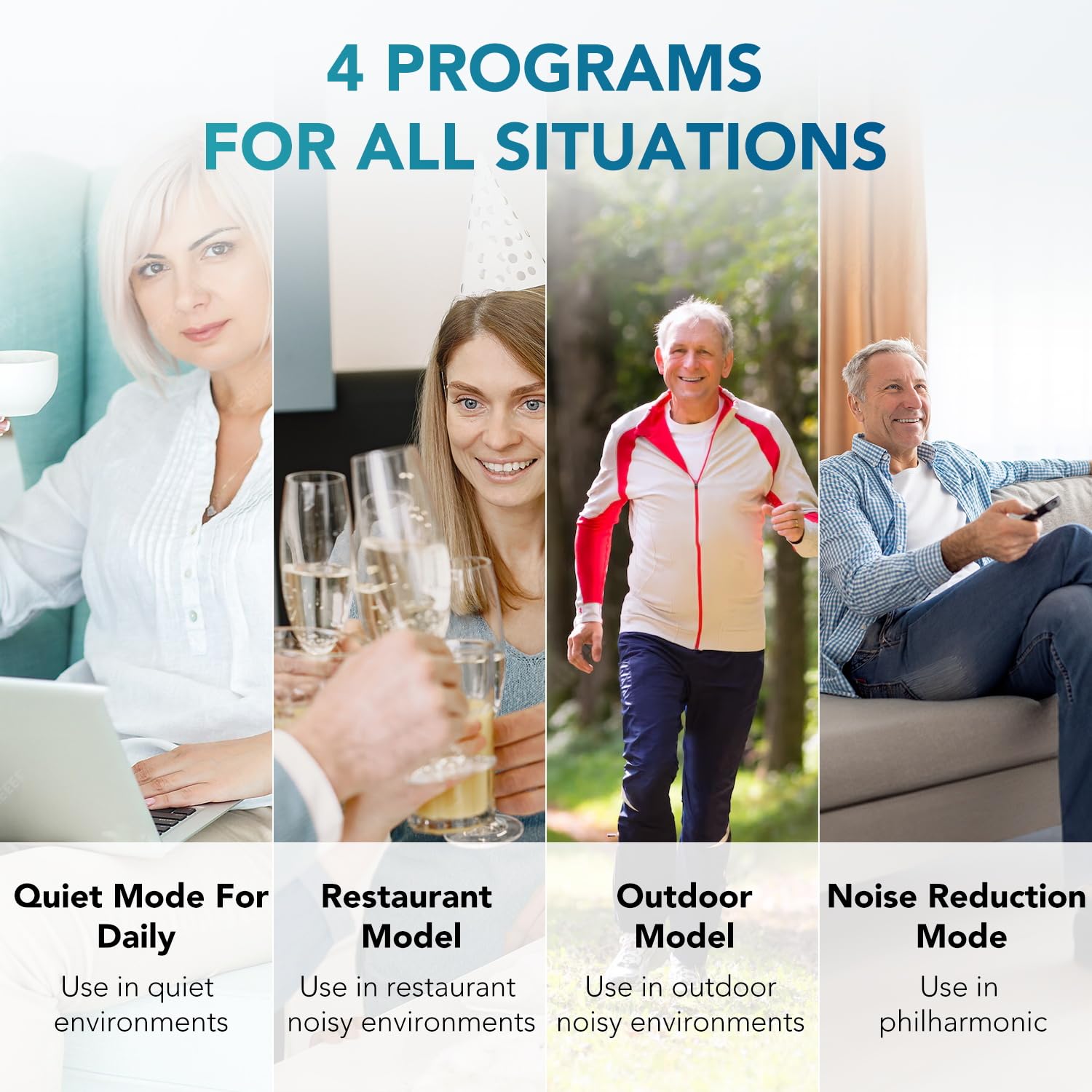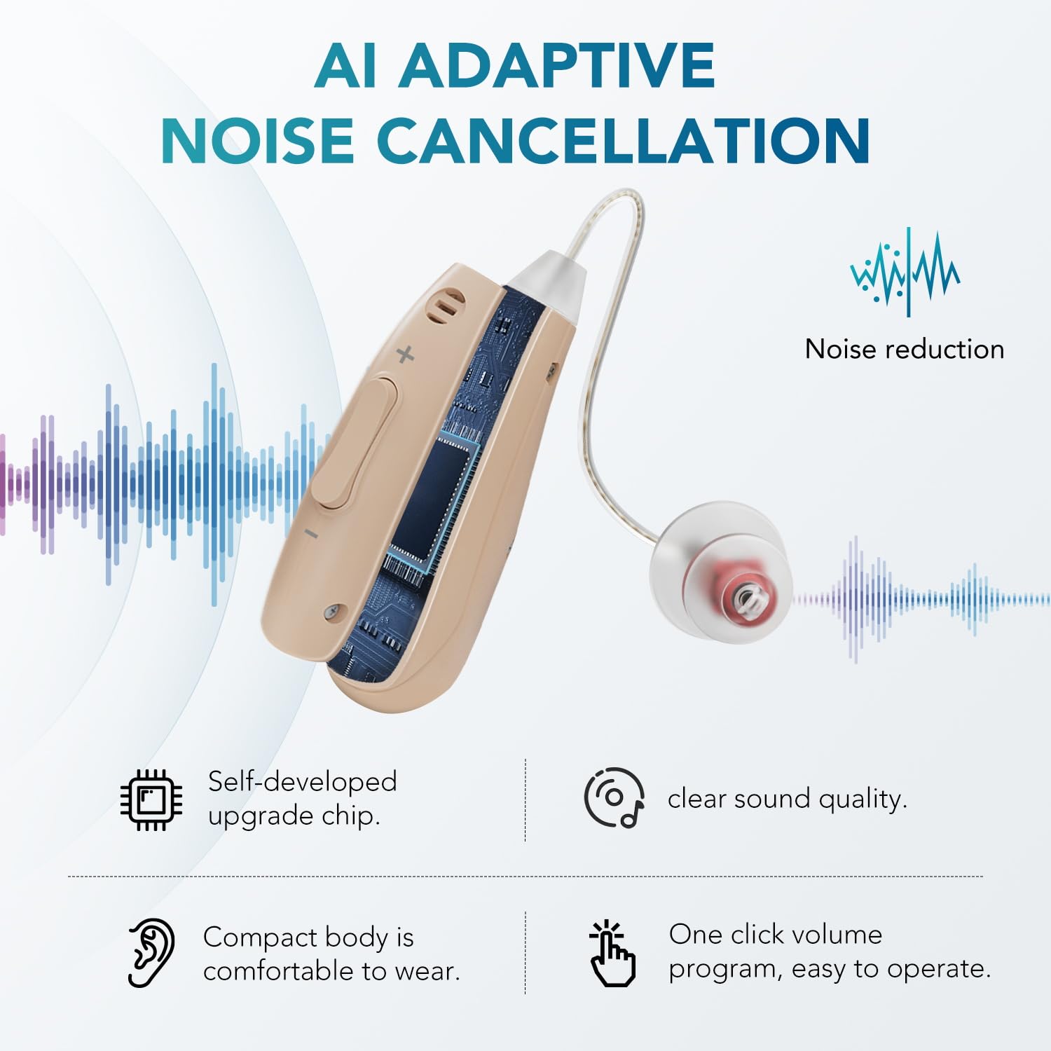Excellent Sound Quality. The hearing aids adopted of 16-channel digital chip with intelligent noise cancellation technology to filter out background noise. They can accurately capture and amplify human speech frequencies, ensuring crisp conversations in restaurants, family gatherings, and crowded environments.