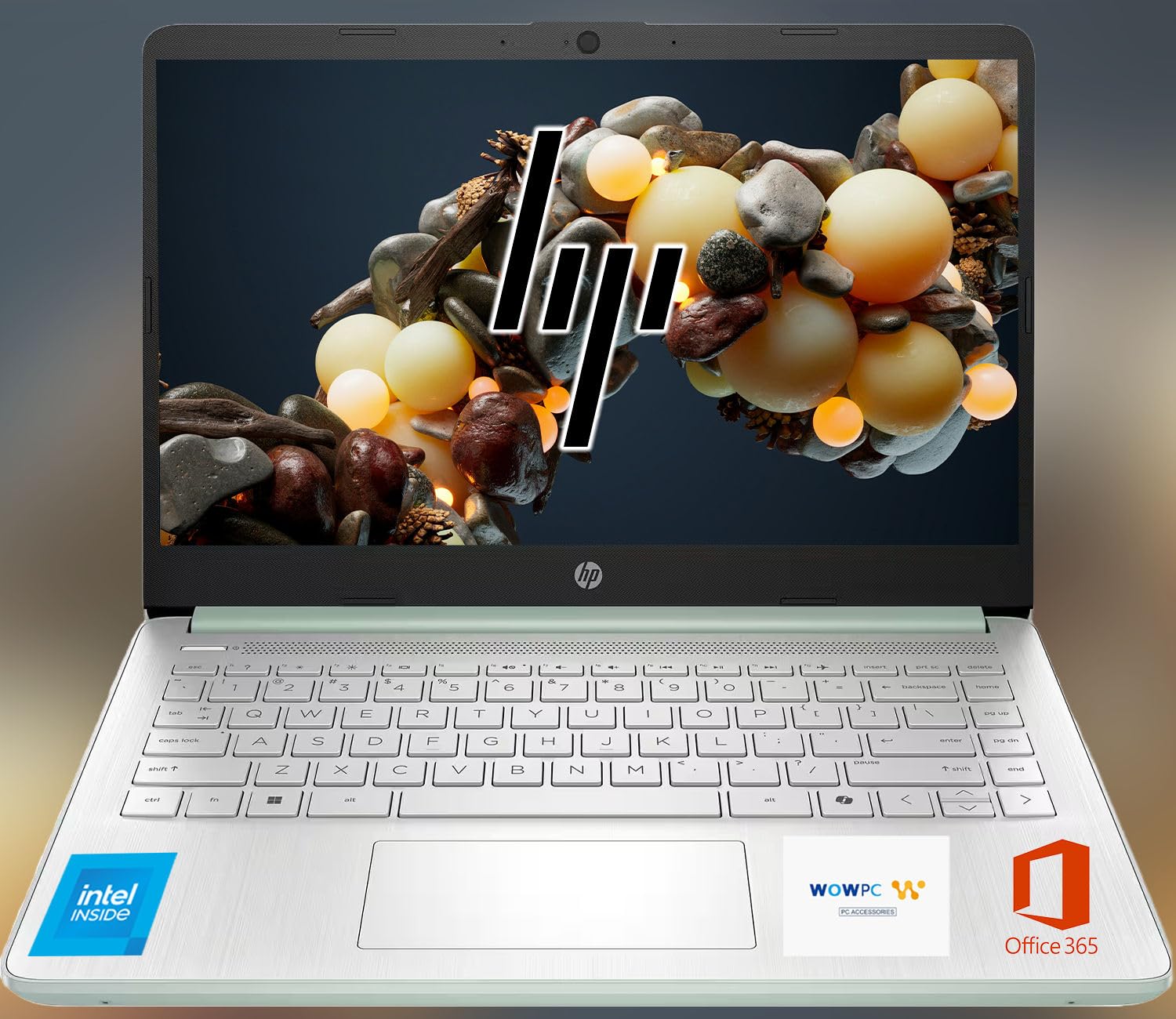 【Processor】 Intel Processor N150 (up to 3.6 GHz, 6 MB Intel Smart Cache, 4 Cores, 4 Threads) 【Graphics】 Intel Graphics 【OS】 Windows 11 Home 64-bit 【Memory】 4GB DDR4 SDRAM 【Hard Drive】 1.6TB Storage (128GB On Board + 512GB Portable Drive + 1TB OneDrive) 【 Display 】 14-inch diagonal, HD (1366 x 768), micro-edge, BrightView, 220 nits, 45% NTSC 【Wireless】 WiFi 802.11 + Bluetooth 5.4 【Audio】 High Definition (HD) Audio, Stereo speakers 【Keyboard】 US English, NonBacklit Full Size Keyboard 【Webcam】 HP True Vision 720p HD camera with temporal noise reduction and integrated dual array digital microphones 【Ports】 1 x USB 2.0 1 x USB 3.2 Gen 1 1 x USB-C 3.2 Gen 1 DisplayPort 1.2 1 x AC smart pin 1 x HDMI 1.4b 1 x Headphone / Mic Combo Jack 1 x Multi-Format SD Media Card Reader 【Battery】 Up to 12 Hours 【Color】 Willow Green 【Dimensions】 12.76 x 8.86 x 0.71 【Weight】 3.24 lbs 【Bundle】 1 x 512GB External Hard Drive 1 x Microfiber Cloth 1 x Hotkey Sticker 1 x 1 Year Office 365 Subsciption